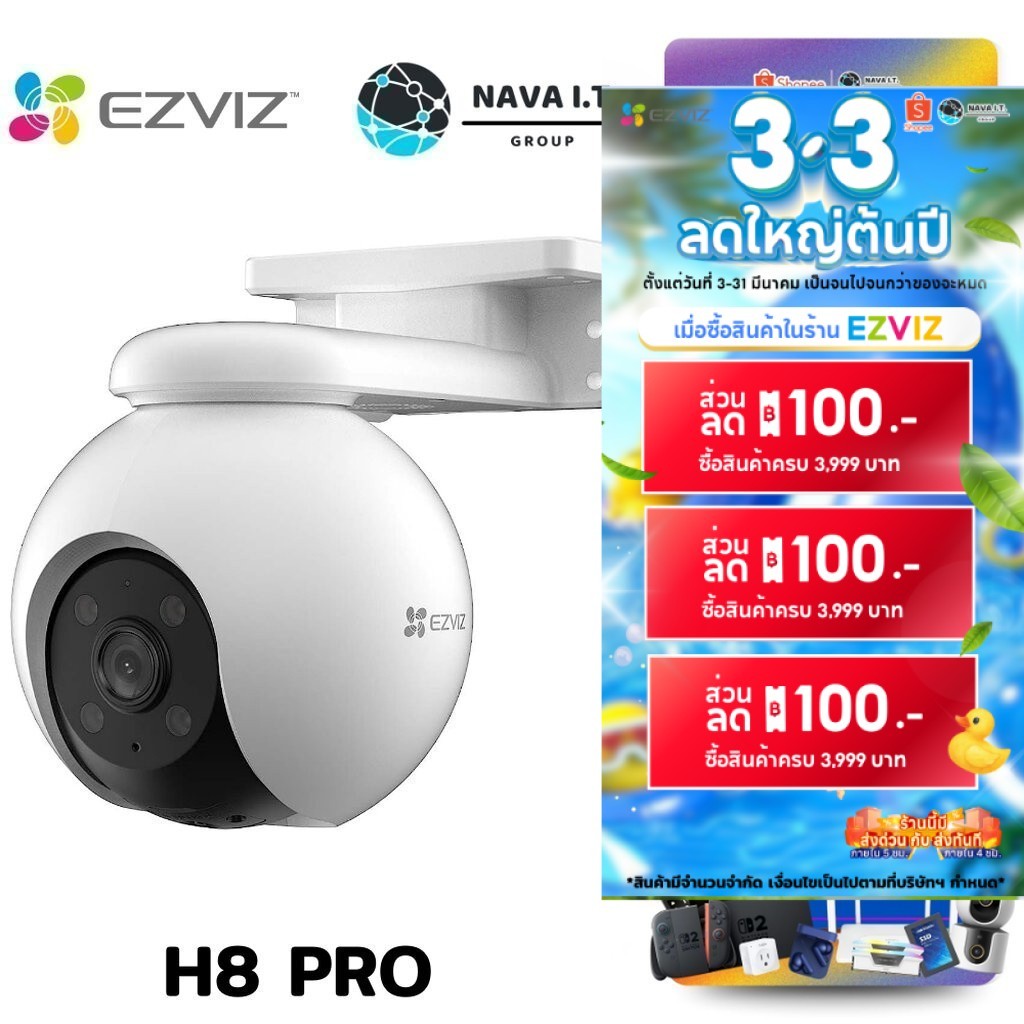 ⚡️กรุงเทพฯด่วน1ชั่วโมง⚡️ EZVIZ H8 PRO กล้องวงจรปิดไร้สาย WI-FI CAMERA 5MP 3K RESOLUTION PAN & TILT