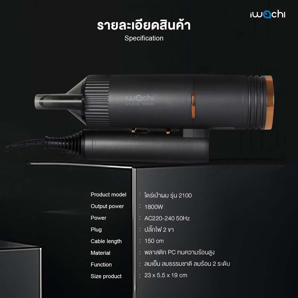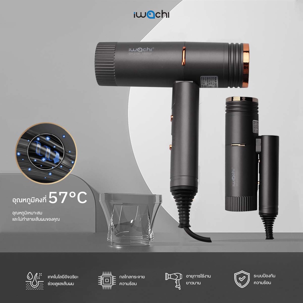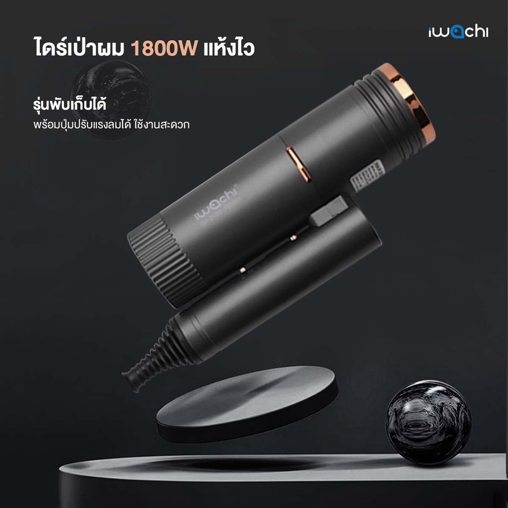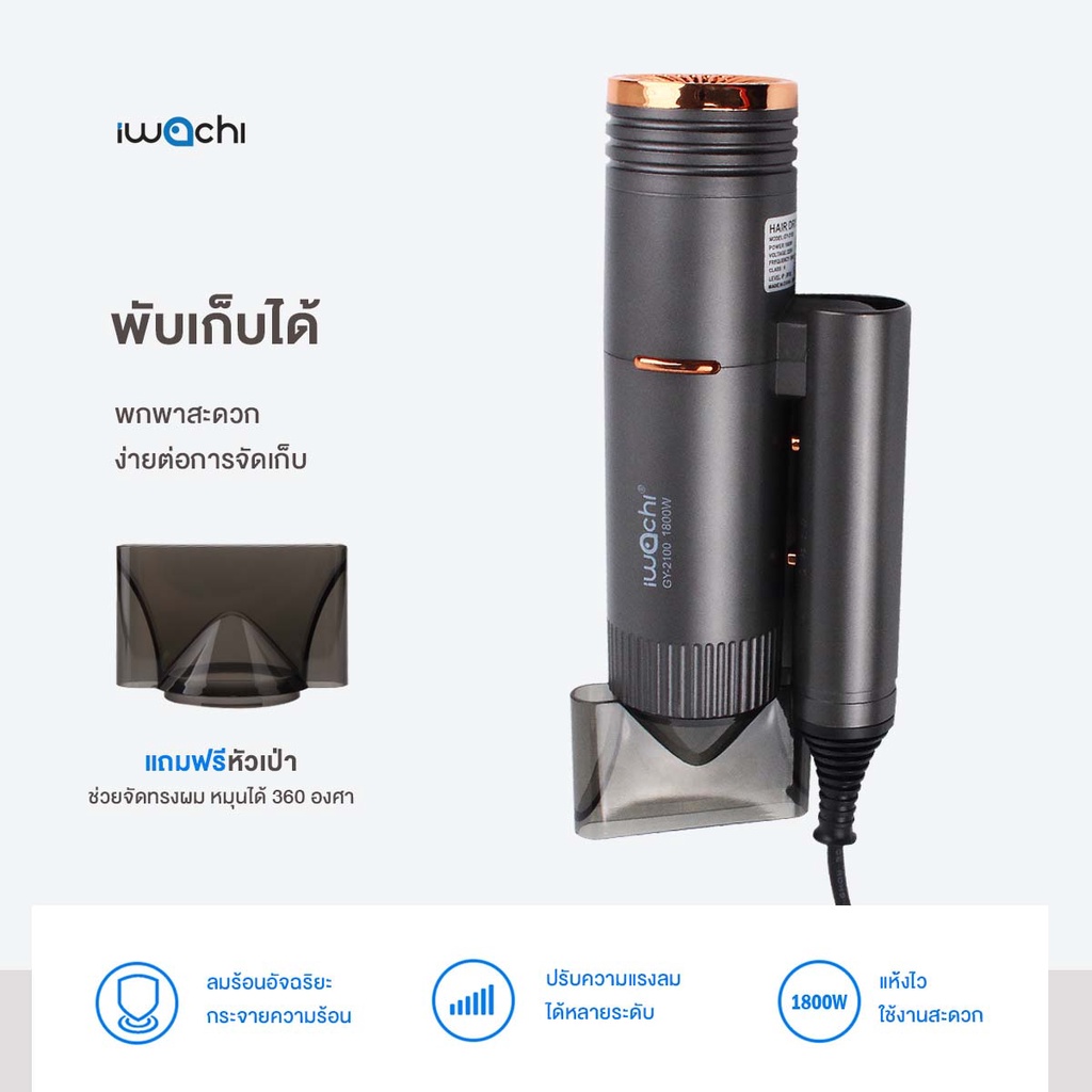 ไดร์เป่าผม แท้ IWACHI พับได้ 1800W แห้งไว ปรับค วามแรงลมได้ 3 ระดับ ลมร้อน/ลมเย็น GY-2100