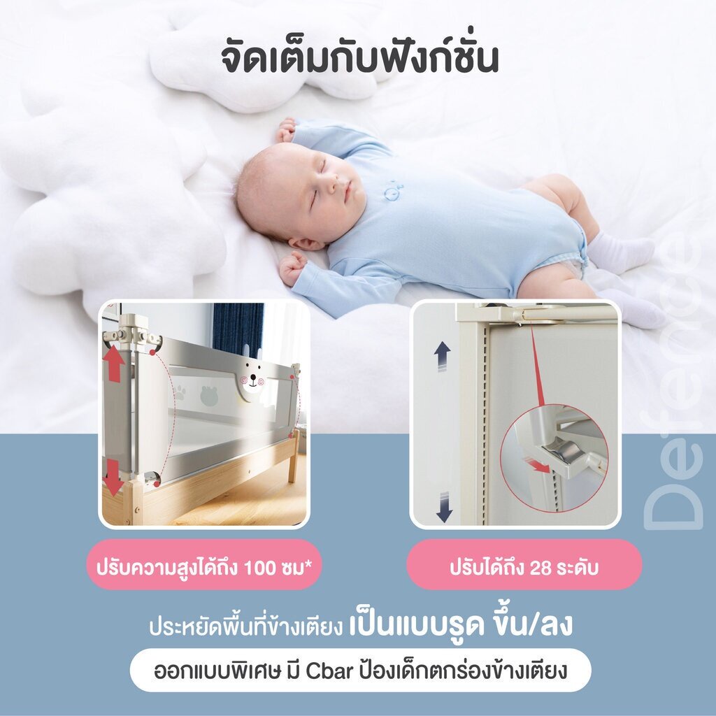 ที่กั้นเตียง กันลูกตกได้ 99% ปรับขึ้นลงแนวดิ่ง กั้นได้สูงสุด 100 cm. ประหยัดพื้นที่ / 1 ข้าง