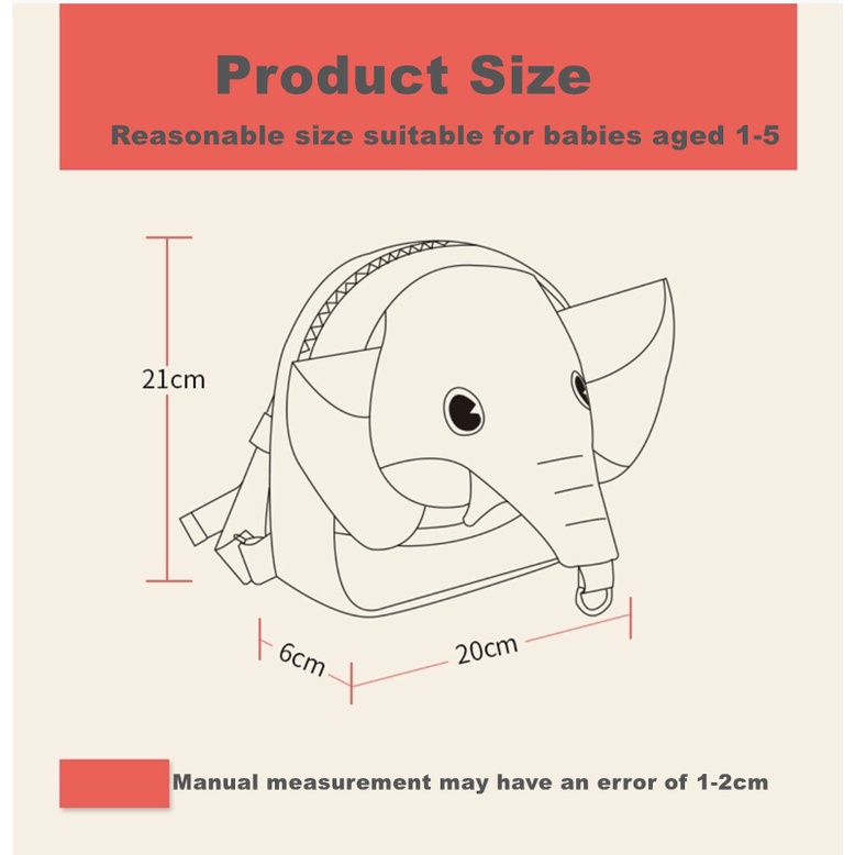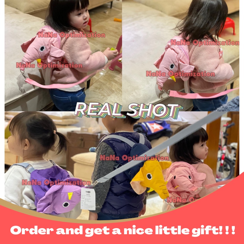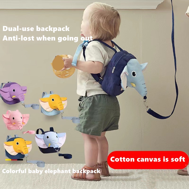 กระเป๋าเป้สะพายหลัง ป้องกันการสูญหาย ลายการ์ตูนช้างน่ารัก พร้อมเชือกจูง สําหรับเด็กผู้ชาย และเด็กผู้หญิง อายุ 1-3 ปี