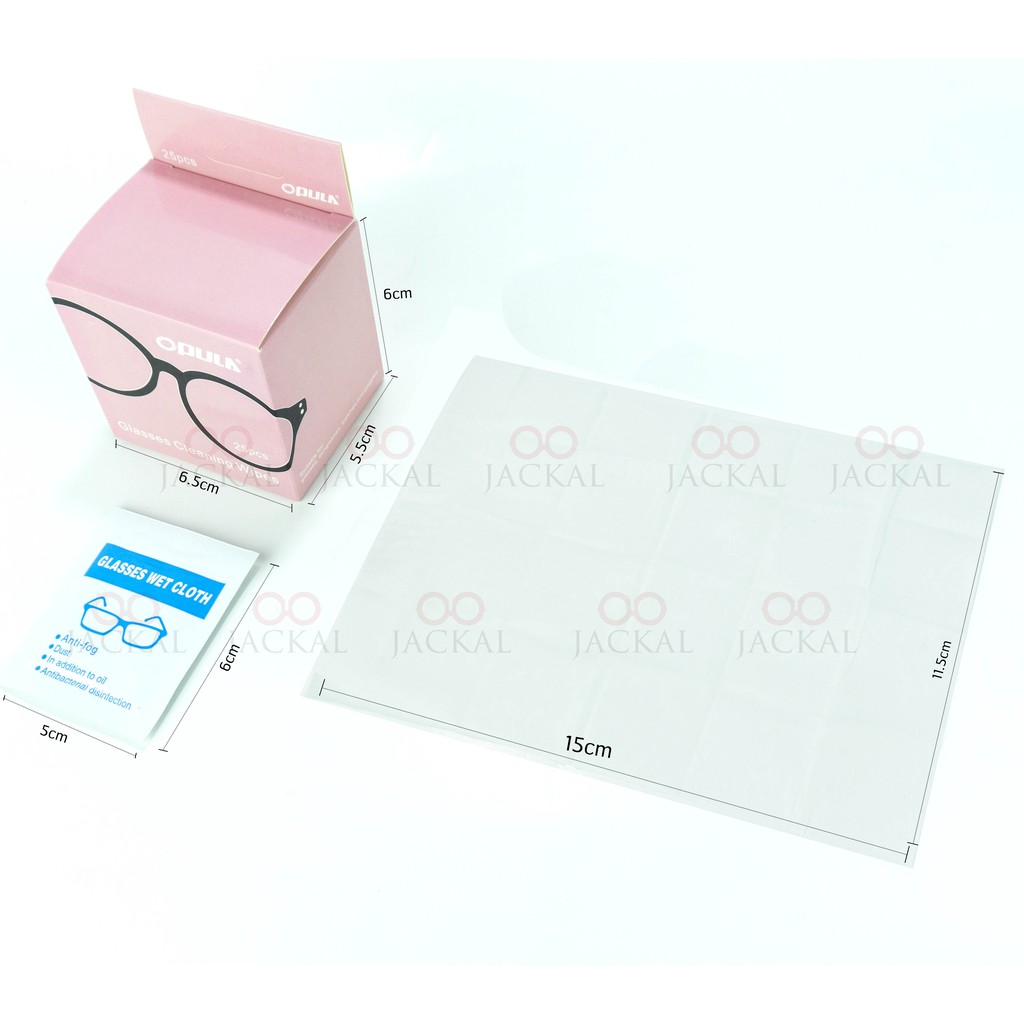 กระดาษเช็ดเลนส์ ผสมแอลกอฮอล์ OPULA ขนาด 25 แผ่น มีน้ำยาในตัว พกพาสะดวก JACKAL