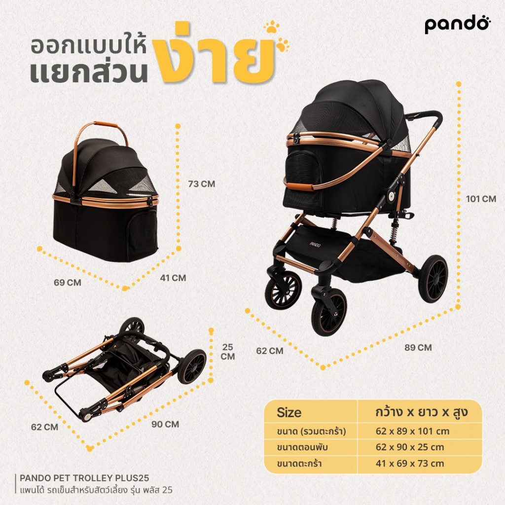 PANDO Pet Trolley PLUS25 Second Gen แพนโด้ รถเข็นสำหรับสัตว์เลี้ยง รุ่น พลัส25