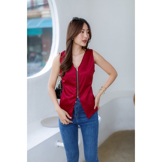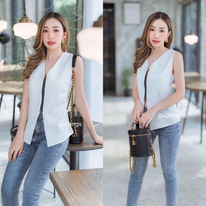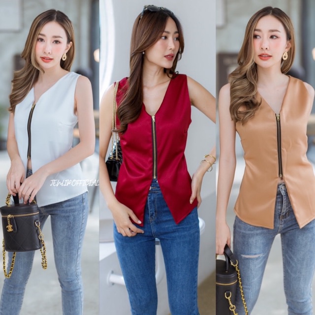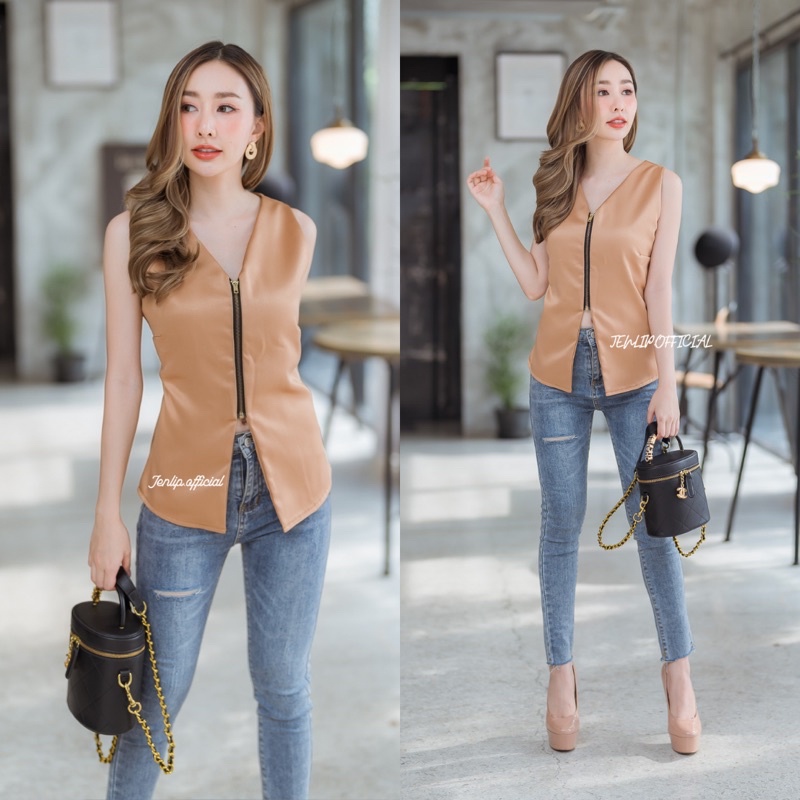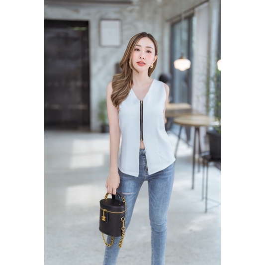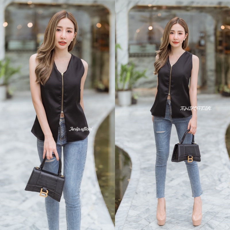 Zipper Top เสื้อแขนกุด คอวี ซิบหน้า ผ้าซาร่า น่ารัก เซ็กซี่ แซ่บๆ เสื้อเกาหลี เสื้อคุณหนู