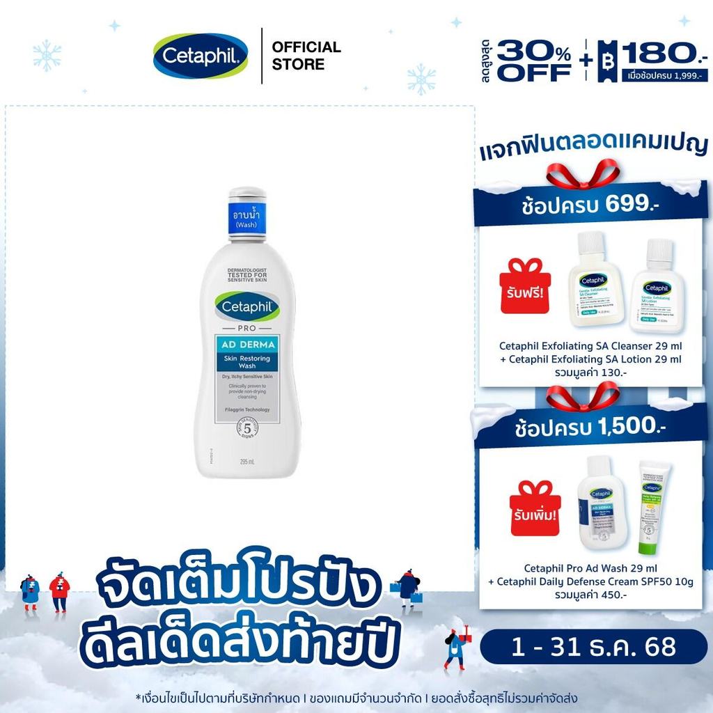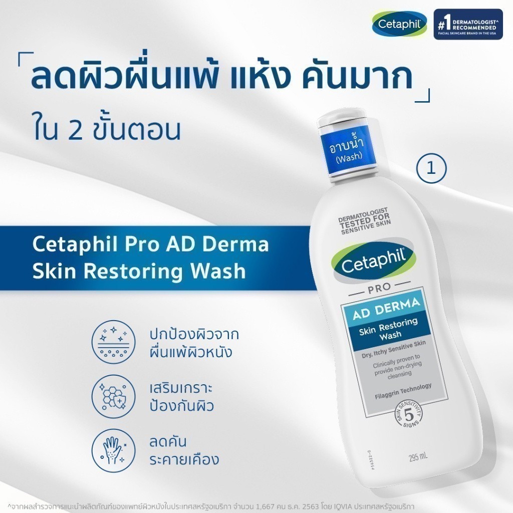 เซตาฟิล Cetaphil Pro AD Derma Skin Restoring Body Washผลิตภัณฑ์ทำความสะอาดผิว ลดผื่นภูมิแพ้ผิวหนัง ผิวแห้ง ผิวคัน 295 ml