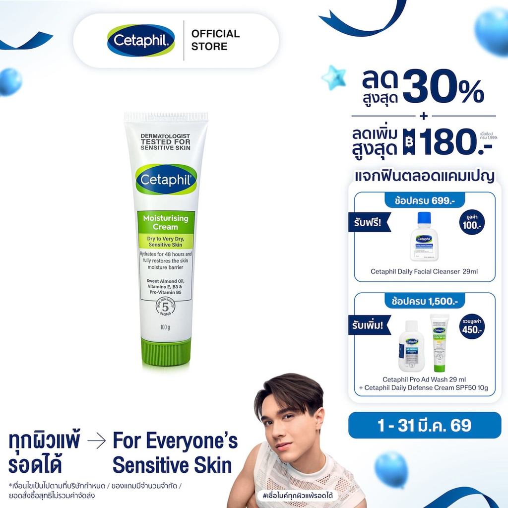 เซตาฟิล Cetaphil Moisturising Cream ครีมบำรุงผิว ให้ความชุ่มชื้น คืนความแข็งแรงให้ผิวบอบบางแพ้ง่าย 100 g.