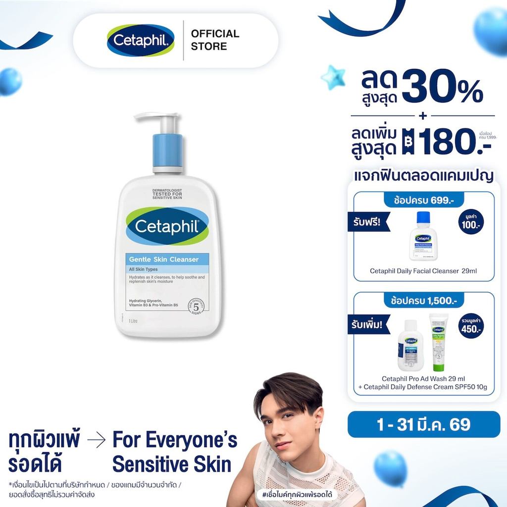 เซตาฟิล Cetaphil Gentle Skin Cleanser เจลทำความสะอาดผิวหน้าและผิวกาย สำหรับผิวบอบบาง แพ้ง่าย และทุกสภาพผิว 1 liter