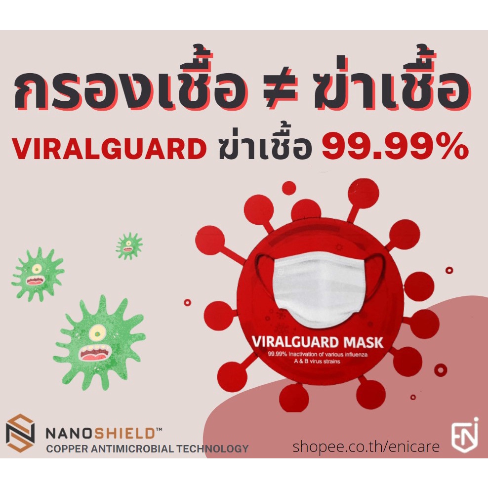 ENiCARE หน้ากากอนามัยฆ่าเชื้อ ViralGuard 4ชั้น - ผ้าไอออนทองแดงจากญี่ปุ่น - แมสฆ่าเชื้อไวรัสและแบคทีเรียได้ 99.99%