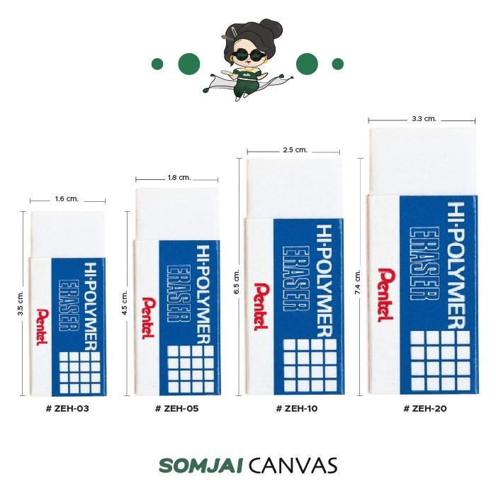 Pentel - เพนเทล ยางลบเพนเทลไฮโพลิเมอร์ หลายรุ่น หลายขนาด