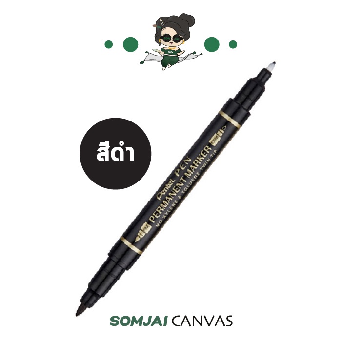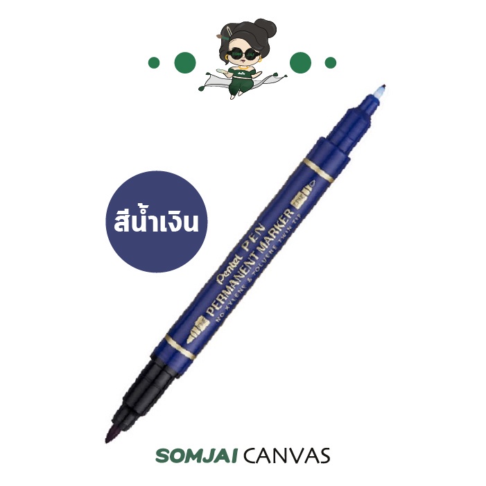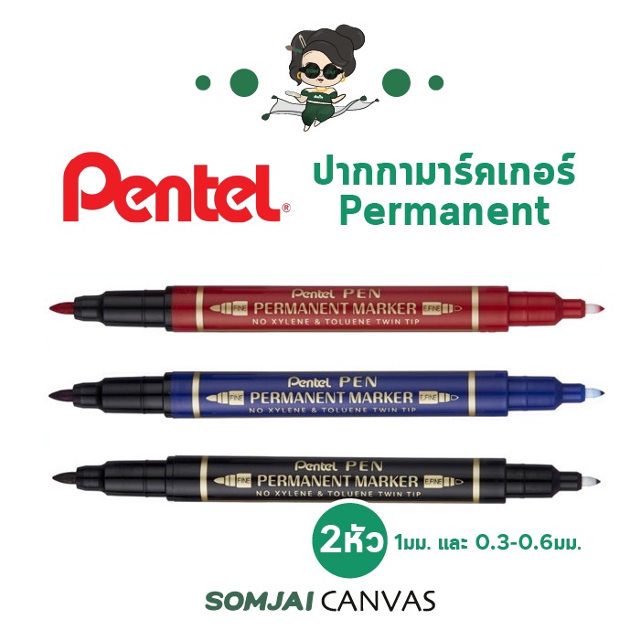 Pentel Permanent ปากกามาร์คเกอร์ ชนิด 2 หัว ขนาดในด้ามเดียว 1 มม. และ 0.3-0.6 มม.รุ่น N75W