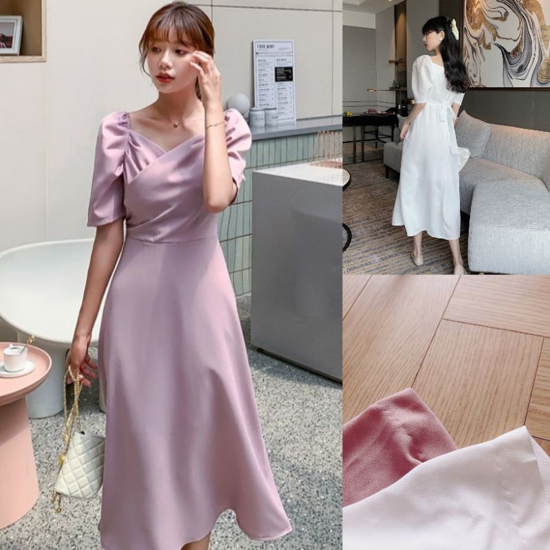 พร้อมส่ง2สี สีขาว,สีชมพู เดรสงานแต่งงานยาว D028