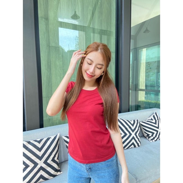 แดงเรียกทรัพย์ สีนี้ Festive สุด🧧🪭ใส่ได้หลายโอกาส เสื้อยืดคอตตอน100 เสื้ออินดี้ใส่สบายที่สุด สีเบอรี่ #18