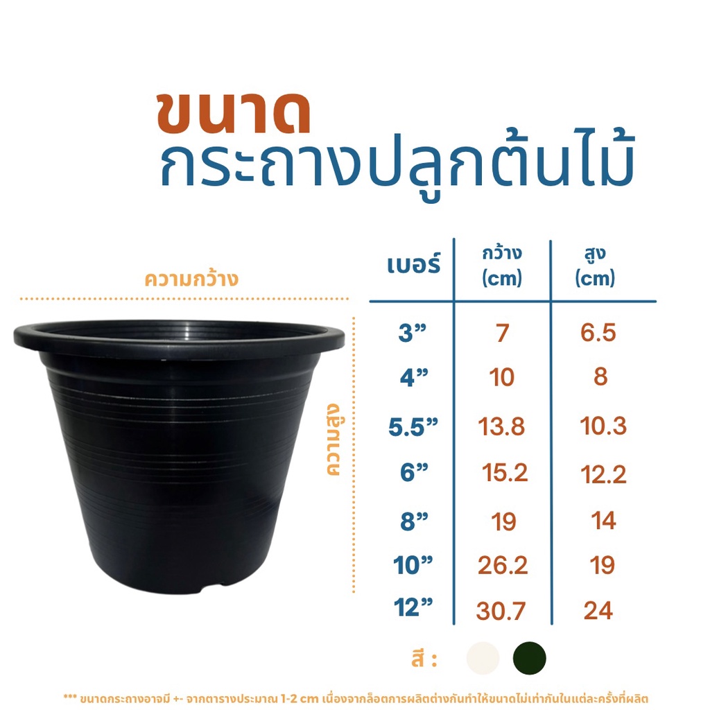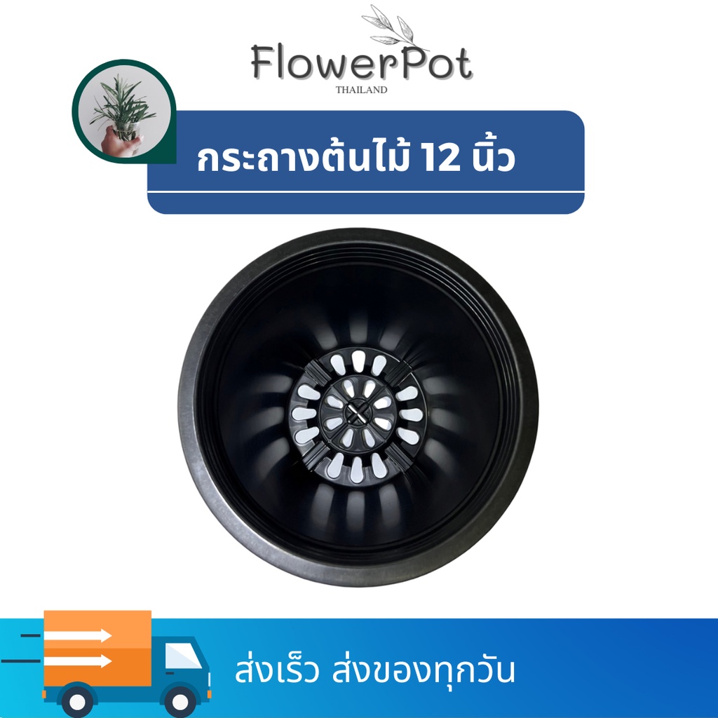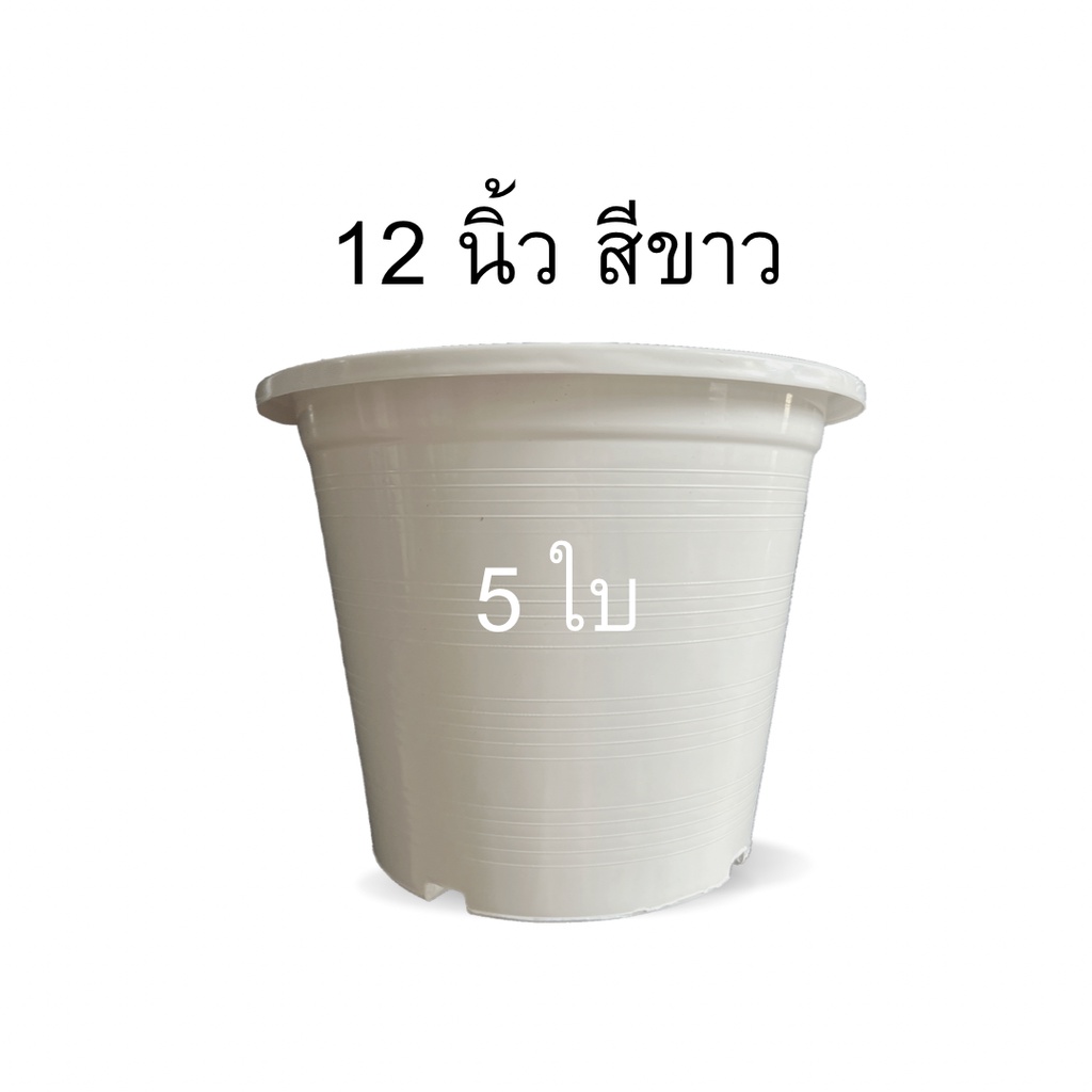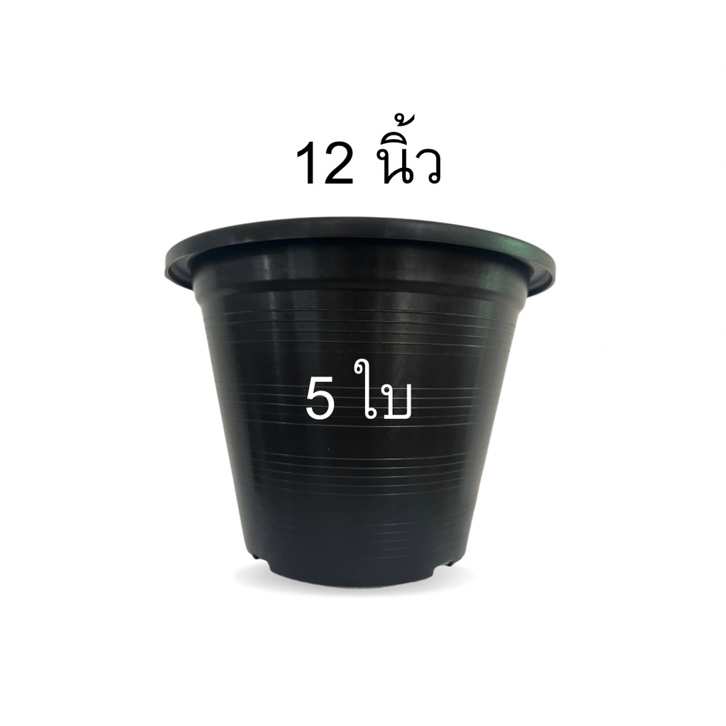 [5 ใบ] กระถางต้นไม้ 12 นิ้ว สีดำ ปลูกบอน
