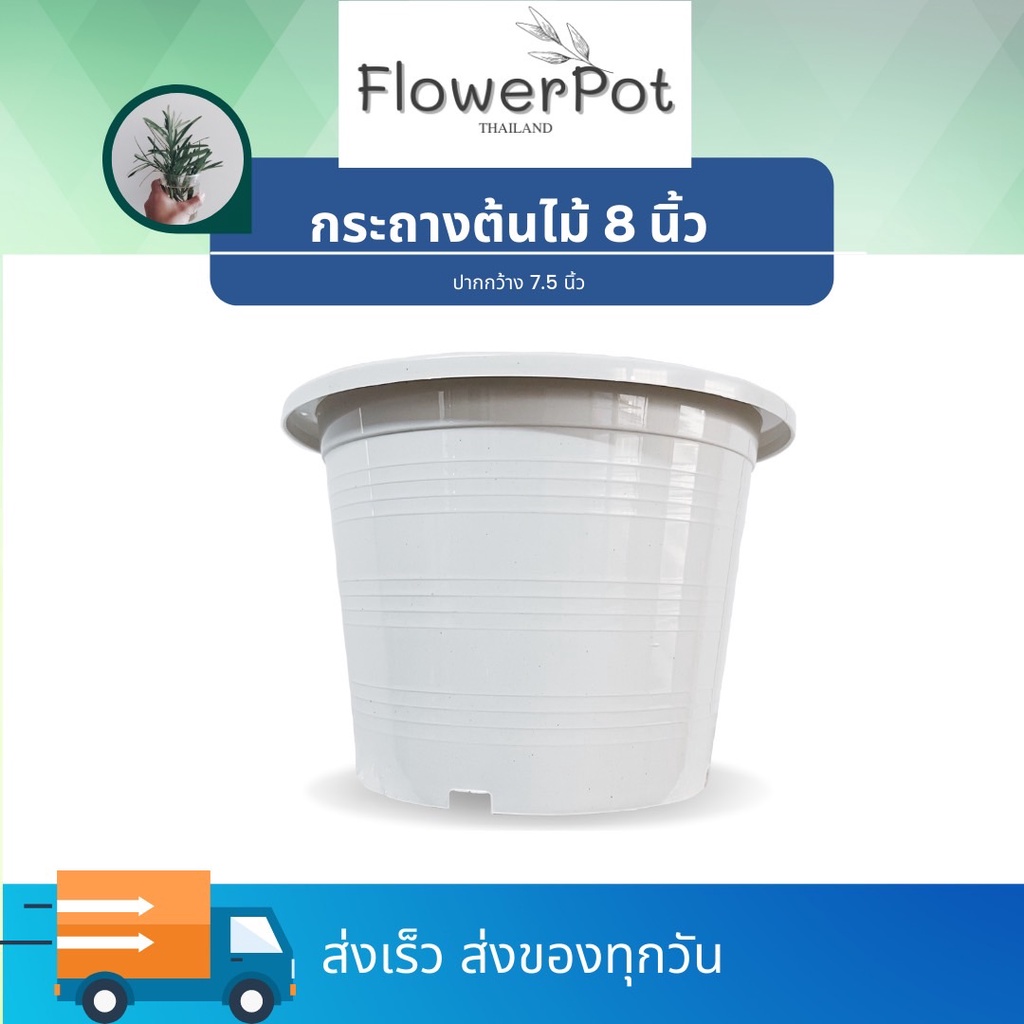 (จำนวน 1ใบ) กระถางต้นไม้สีขาว 8 นิ้ว ปากกว้าง 7.5 นิ้ว