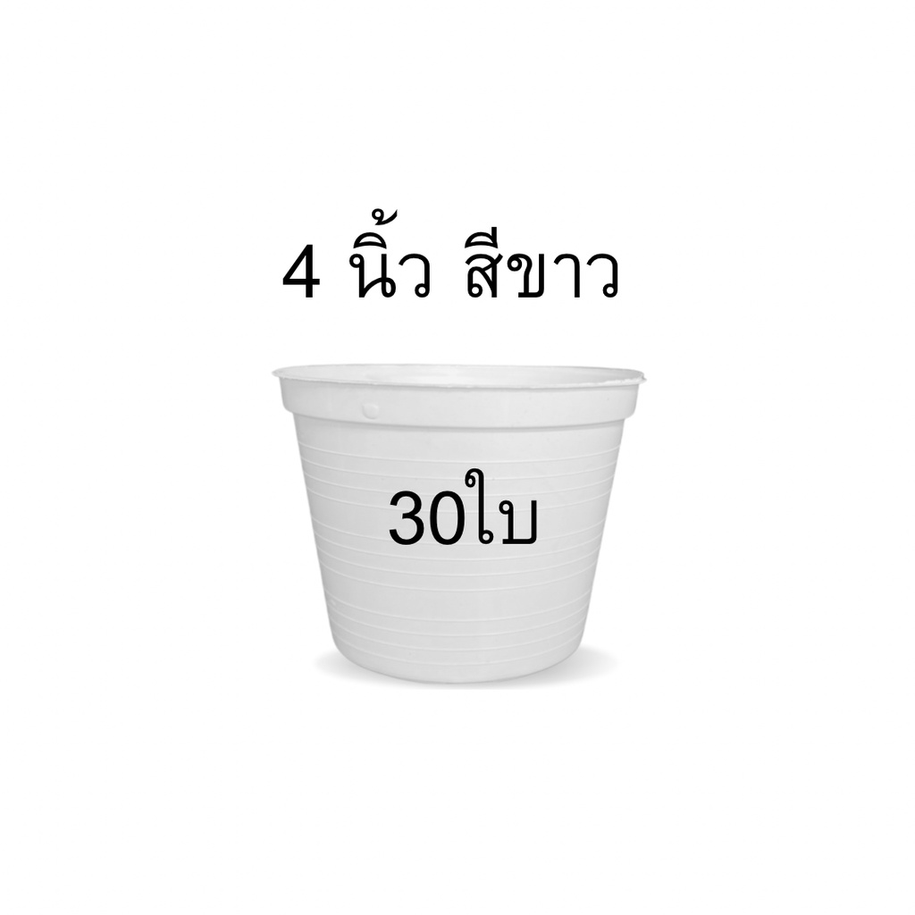 [30ใบ] กระถาง สีขาว 4 นิ้ว กระถางต้นไม้ พลาสติก