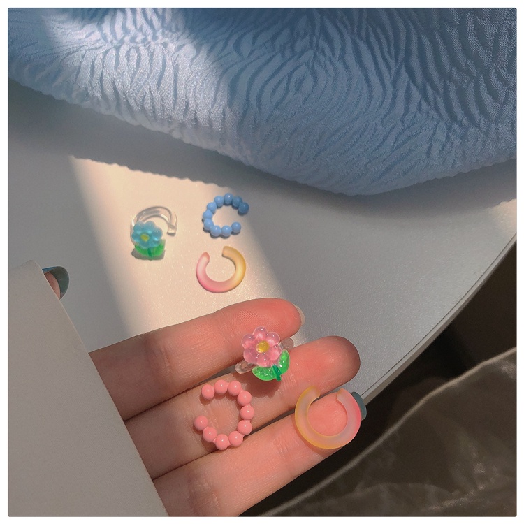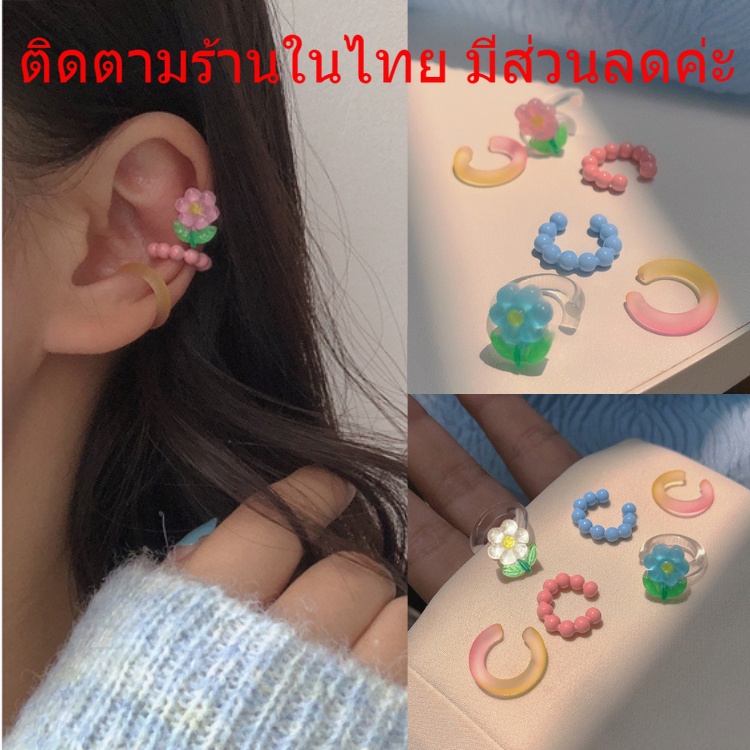 ส่งของทุกวันในไทย🔥 3 ชิ้น/เซต ต่างหูหนีบ ต่างหูอะคริลิค ปรับขนาดได้ ลายดอกไม้ แฟชั่น เครื่องประดับ สไตล์เกาหลี