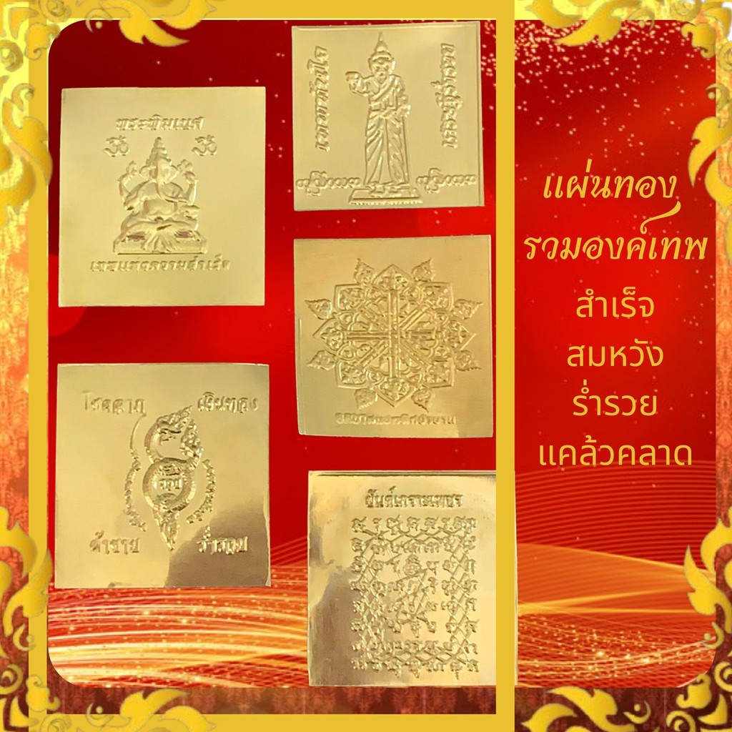 แผ่นทองโภคทรัพย์ ตะกรุด จี้พระแผ่นทอง 🙏 ยันต์ พระพิฒเนศ หลวงปู่ทวด ท้าวเวสสุวรรณ สาริกาลิ้นทอง ชินบัญชร L.1
