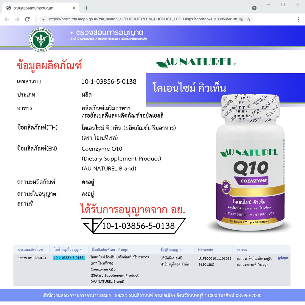 [ซื้อ 1 แถม 1] Q10 โคเอนไซม์ คิวเท็น Coenzyme Q10 x 1 ขวด โอเนทิเรล AU NATUREL คิวเทน