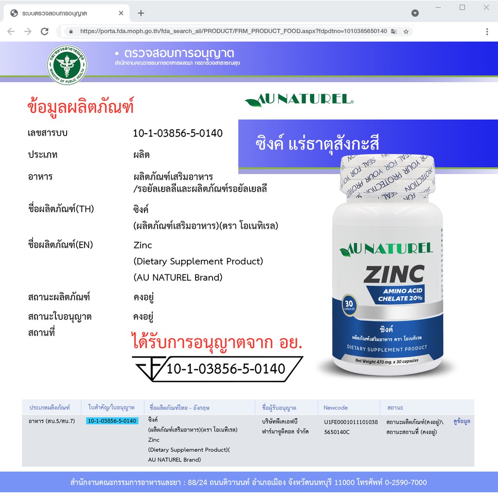 [ซื้อ 1 แถม 1] ซิงค์ Zinc โอเนทิเรล AU NATUREL แร่ธาตุสังกะสี สังกะสี