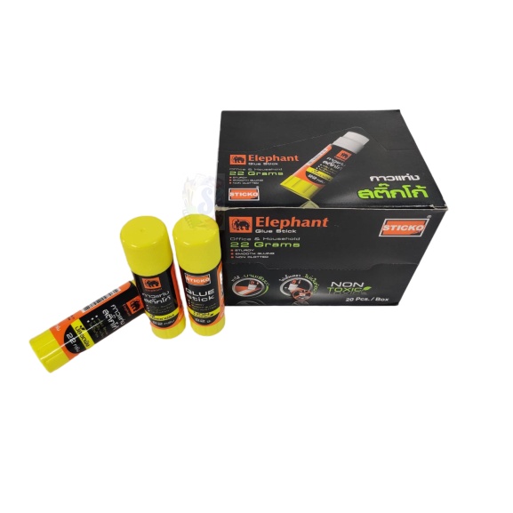 กาวแท่ง ตราช้าง เนื้อสีขาว เหมาะสำหรับงานติดกระดาษทั่วไป ขนาด 22 กรัม