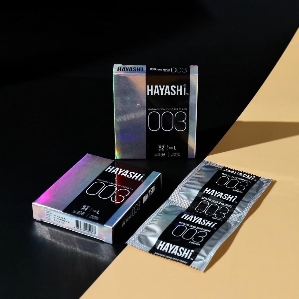 Hayashi 003 ถุงยางอนามัย ฮายาชิ แบบบางพิเศษ ขนาด 52 มม. บาง 0.03 มม. (3 กล่อง)