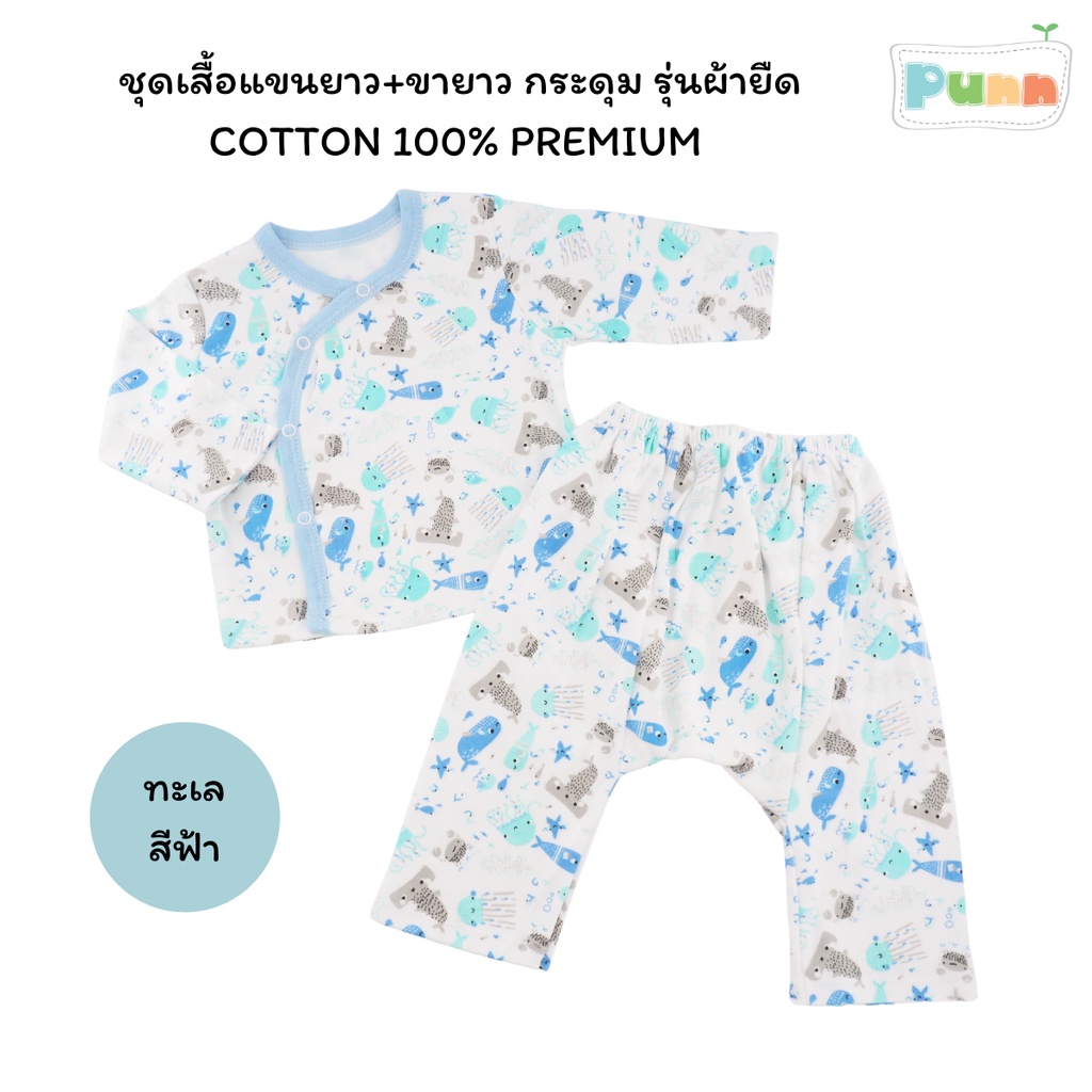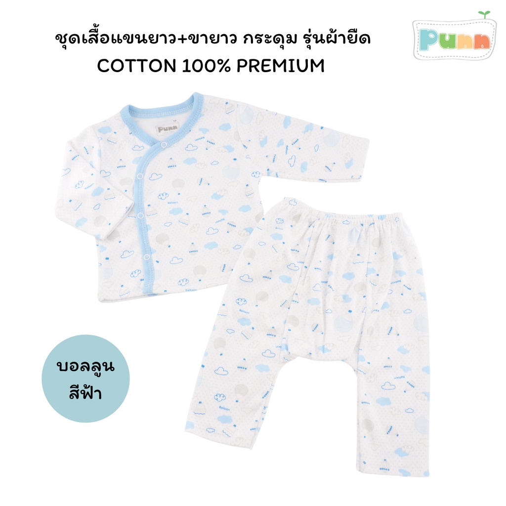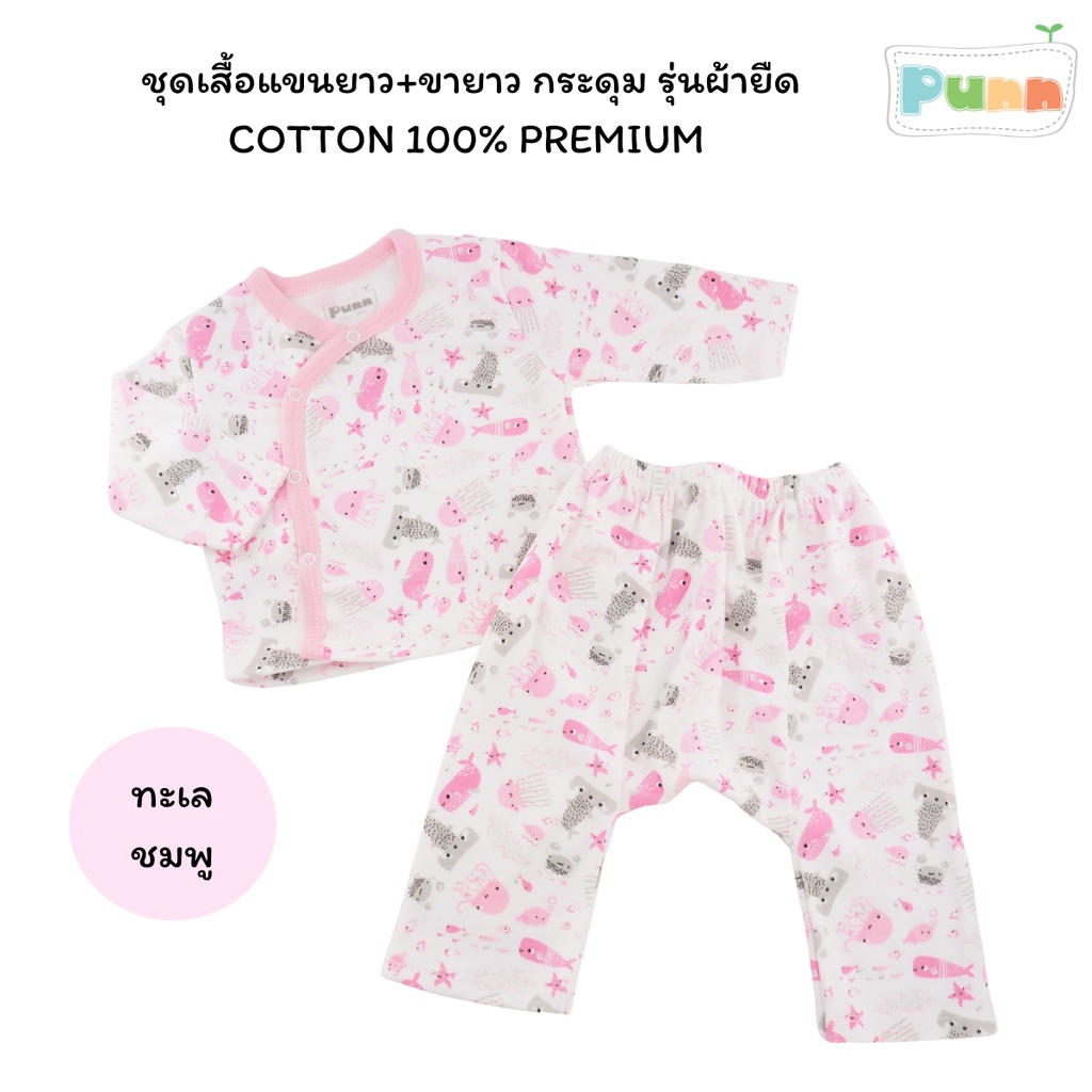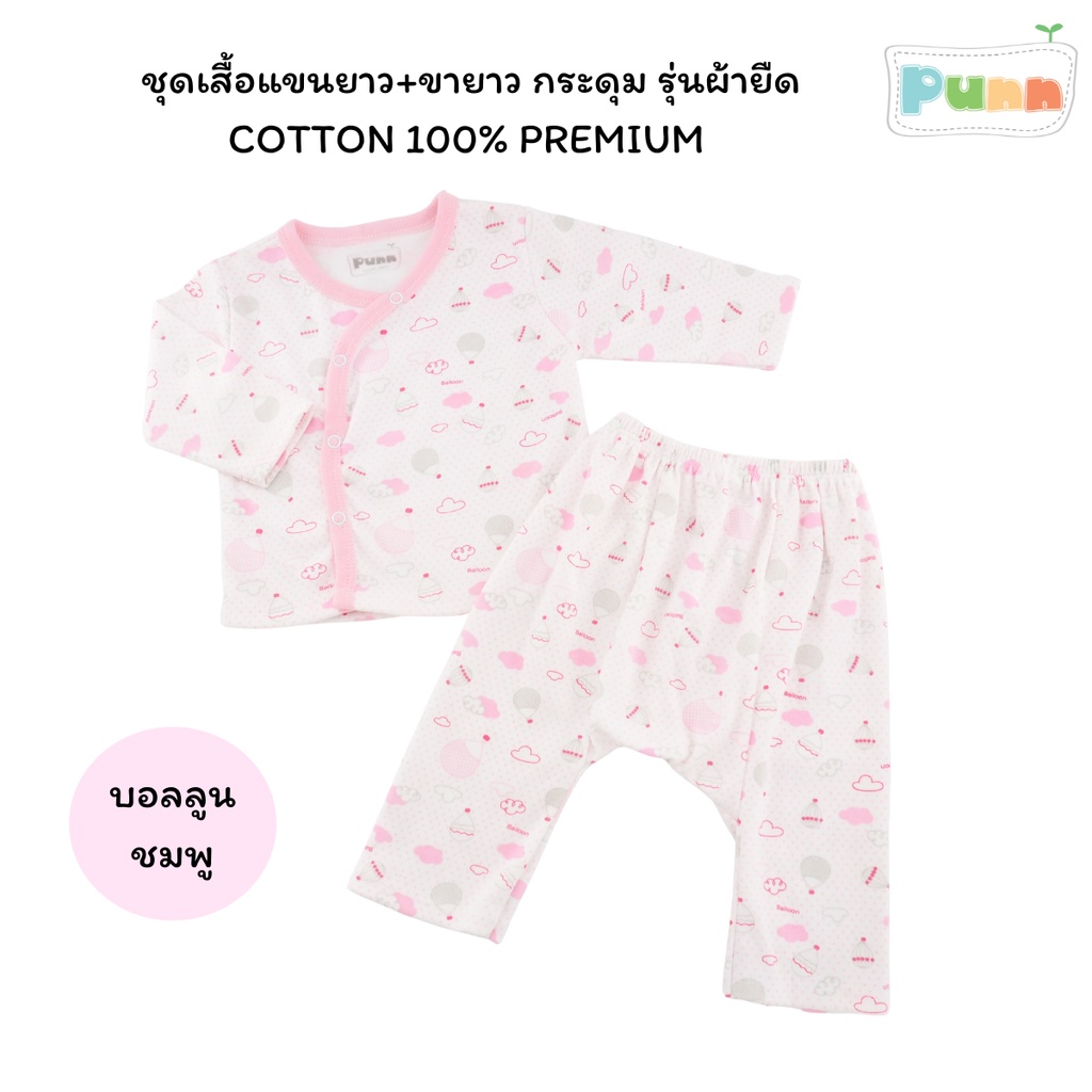 Natty punn รุ่นผ้ายืด COTTON 100% PREMIUM ( เสื้อแขนยาว 1 ตัว + กางเกงขายาว 1 ตัว )