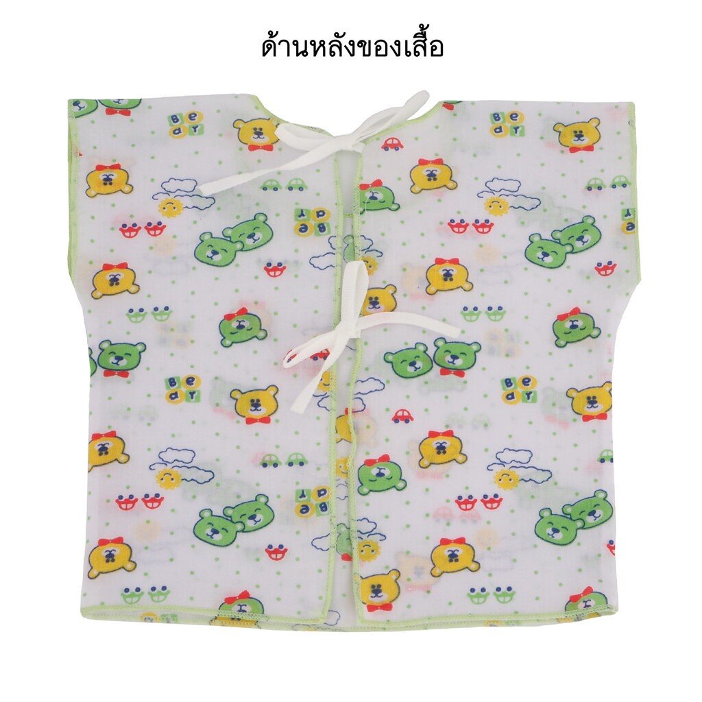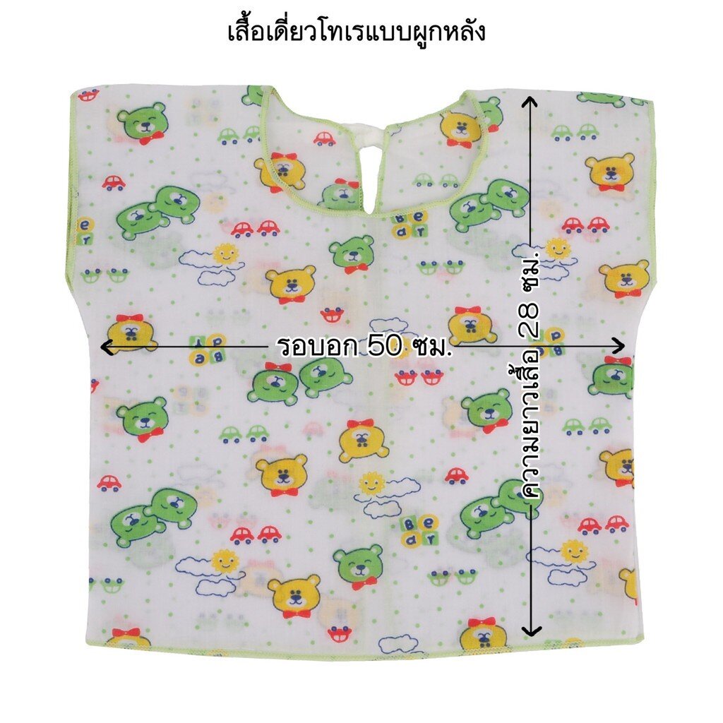 Natty punn เสื้อเดี่ยว ผ้าป่านคละลายแบบผูกหลัง พิมพ์ลายกระจาย 0-3 เดือน