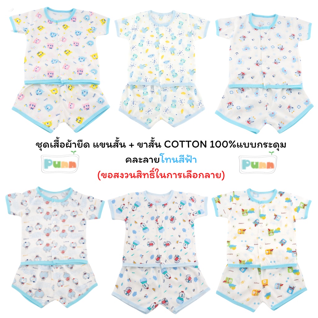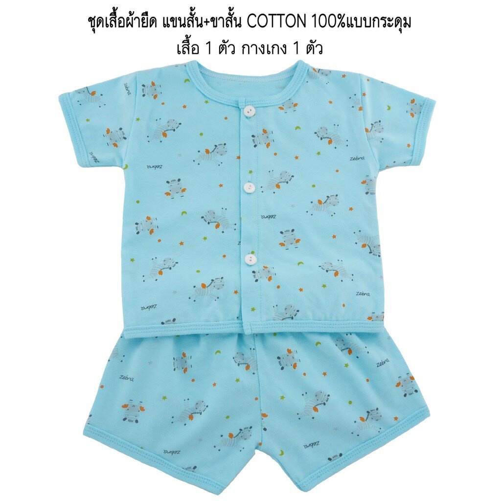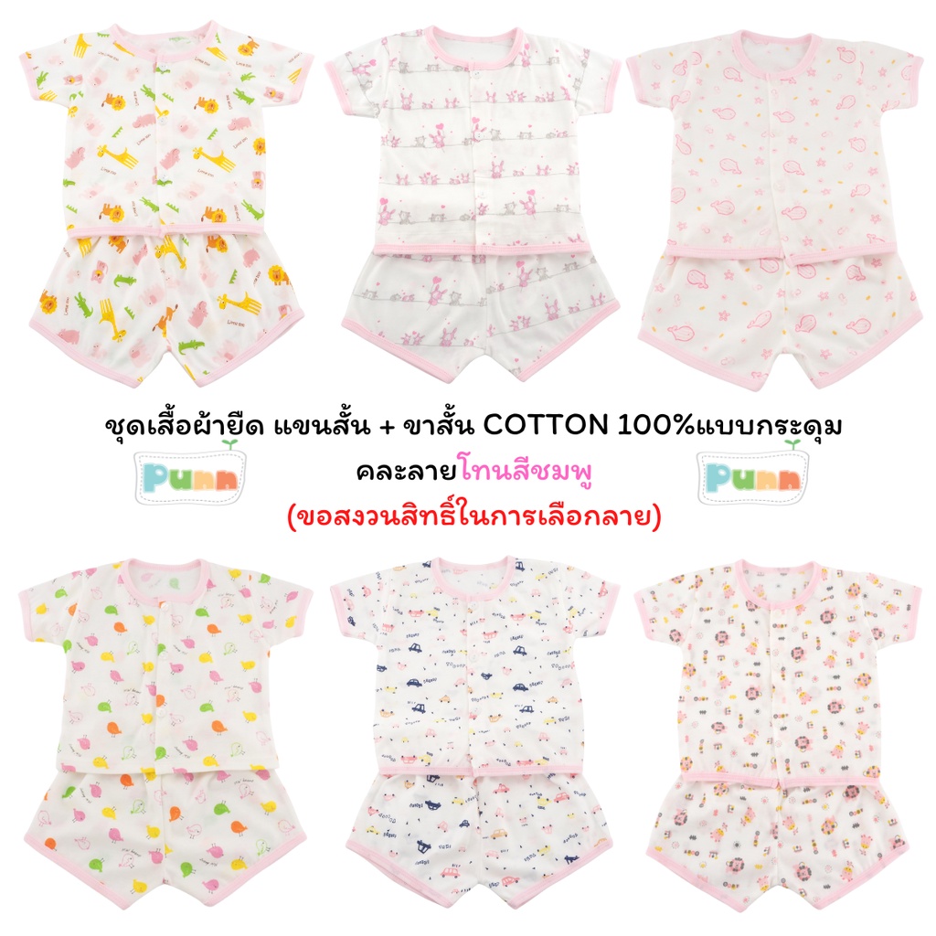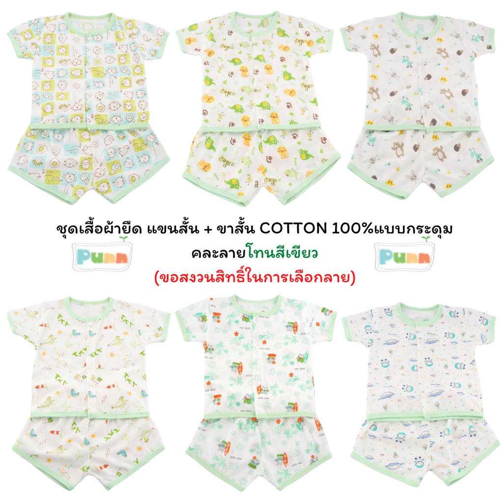 Natty punn ชุดเสื้อผ้ายืด แขนสั้น + ขาสั้น COTTON 100%แบบกระดุม