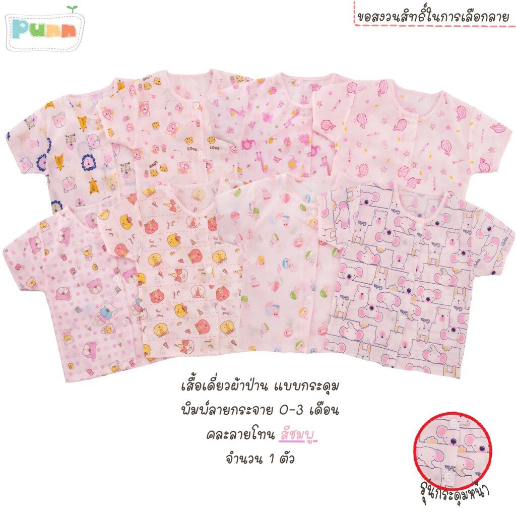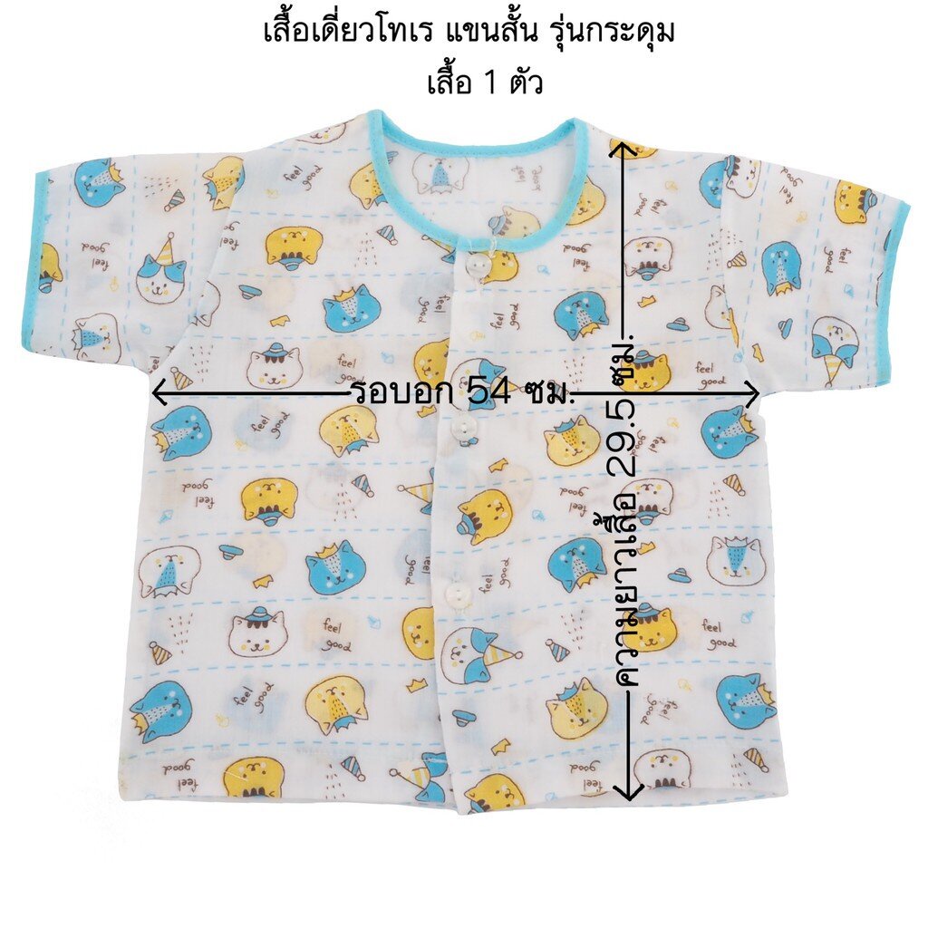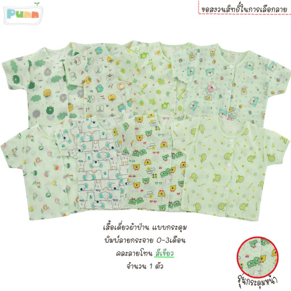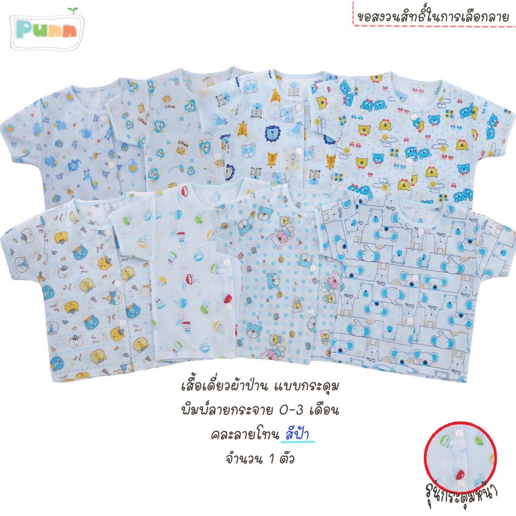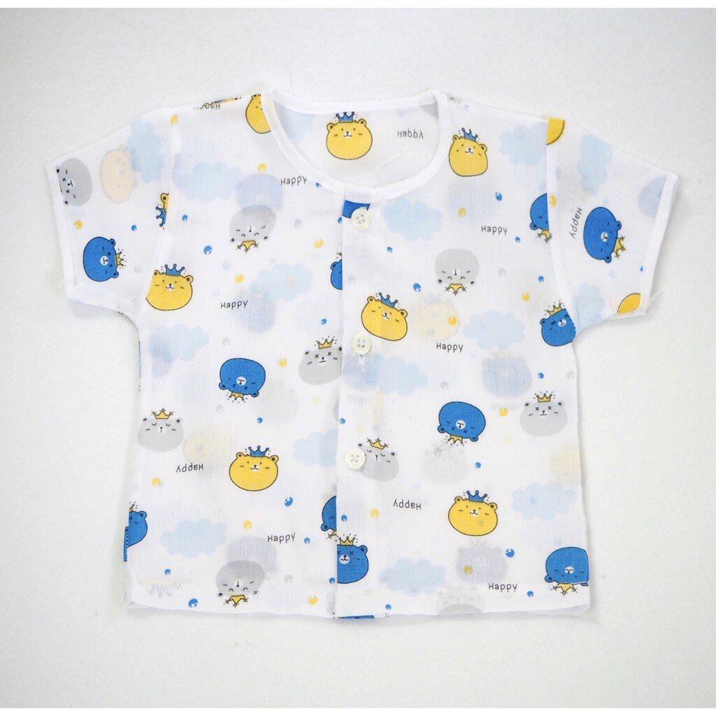 Natty punn เสื้อเดี่ยว ผ้าป่านคละลายแบบกระดุม พิมพ์ลายกระจาย 0-3 เดือน จำนวน 1 ตัว