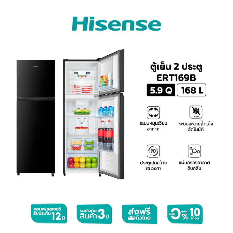 Hisense ตู้เย็น 2 ประตู :5.9Q / 168 ลิตร รุ่น ERT169B