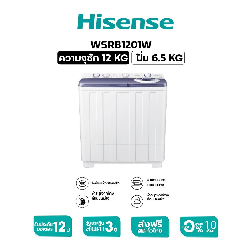 [Presale พร้อมส่ง 22 ธค] Hisense เครื่องซักผ้าฝาบนสองถัง สีขาว ความจุ 12 กก. /14 กก. รุ่น WSRB1201W / WSRB1401W