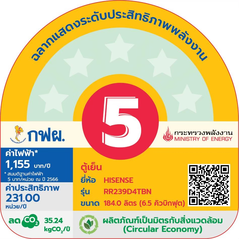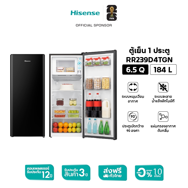 Hisense RR229D4AD1 ตู้เย็น 1 ประตู 6.5Q/ 184 ลิตร Black Color