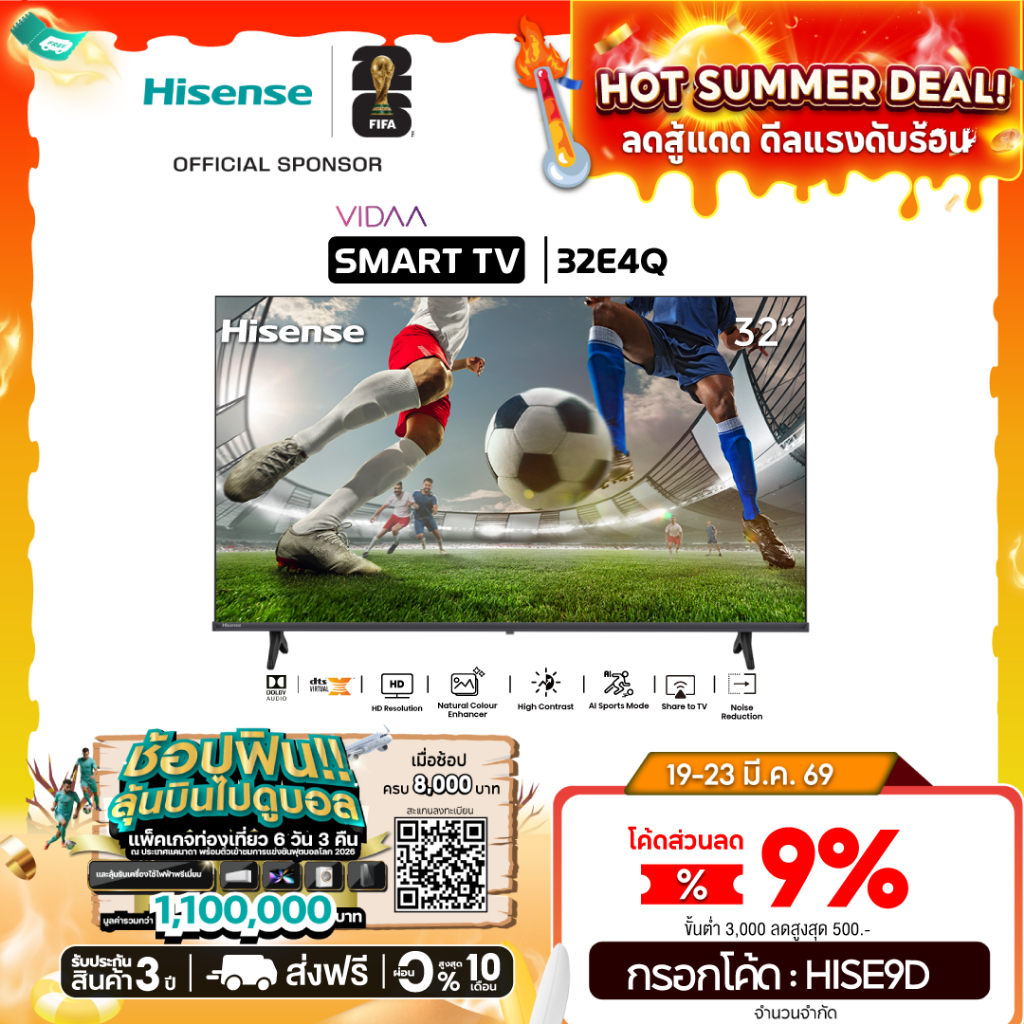 Hisense ทีวี 32 นิ้ว HD VIDAA Smart TV รุ่น 32E4Q