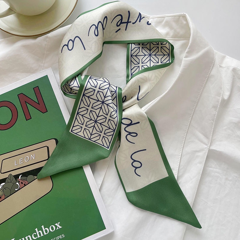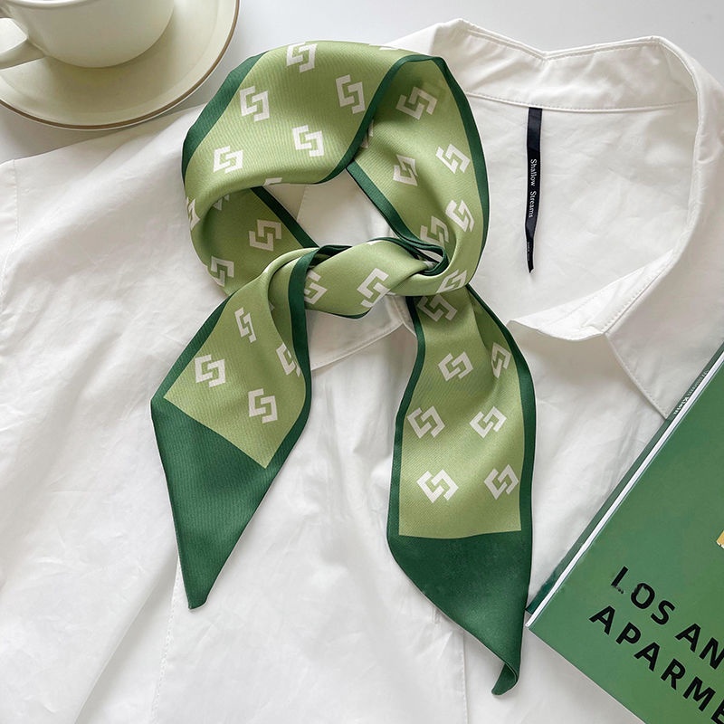 ผ้าพันคอ ผ้าเรยอน แบบบาง ขนาดเล็ก ลายทาง สีเขียว แฟชั่นฤดูใบไม้ผลิ และฤดูร้อน สําหรับผู้หญิง