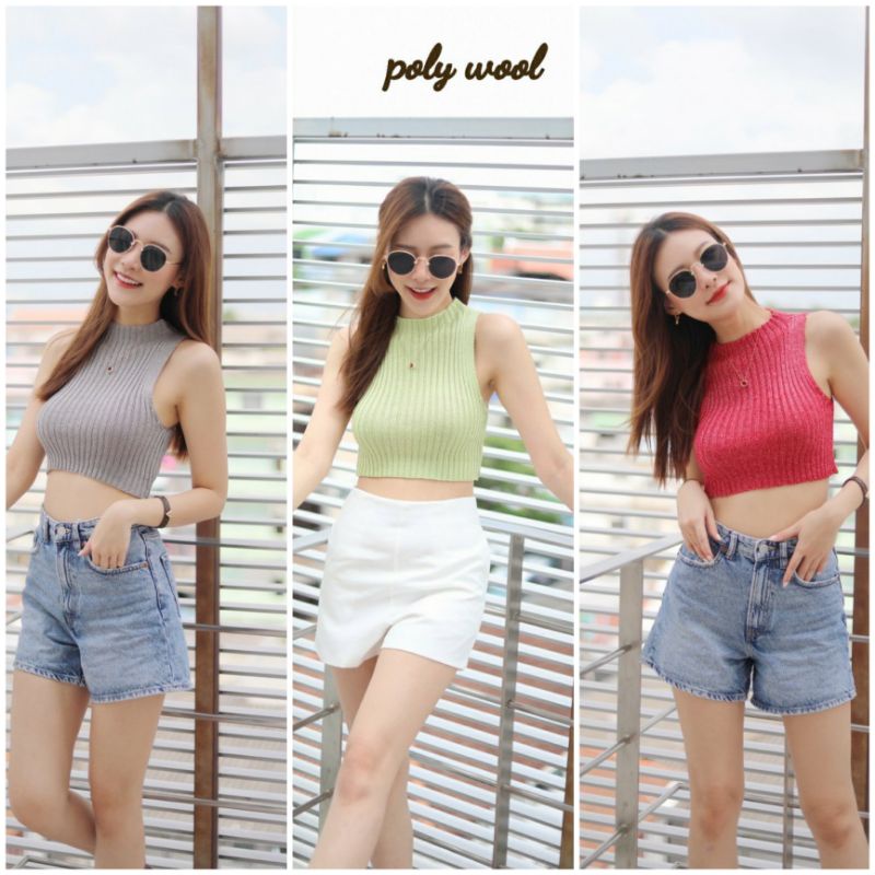 เสื้อไหมพรมคอตั้งแขนกุด Polywool Shop