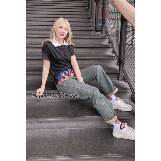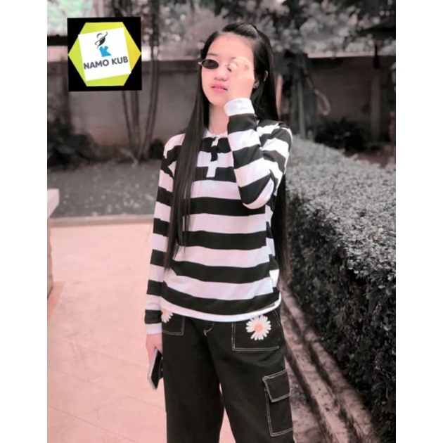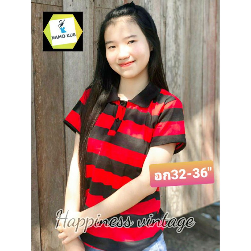 จัดส่งเร็วมาก : เสื้อยืดคอปกแขนสั้น ลายทางแนววินเทจ ลายขวาง ลายฮิตของวัยรุ่น ฮิตมากที่สุดแล้ว เด็กแนว เด็กวัยรุ่น