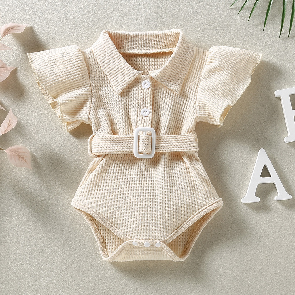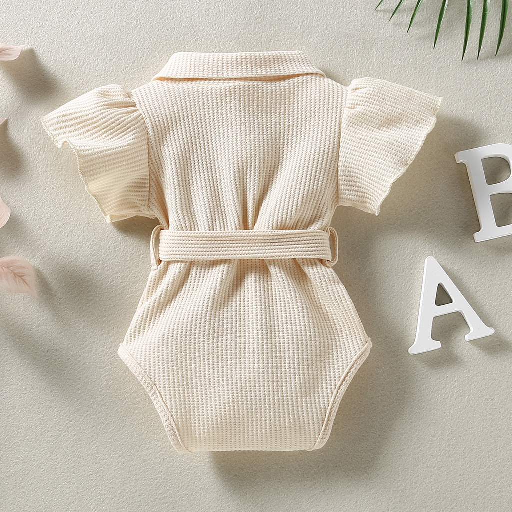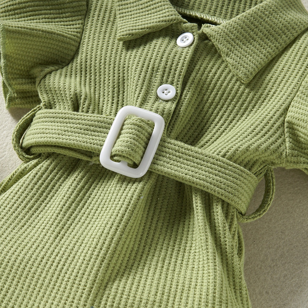 ชุดรอมเปอร์ แขนแต่งเข็มขัด สีชมพูวาฟเฟิล สําหรับเด็กผู้หญิง อายุ 0 24 เดือน