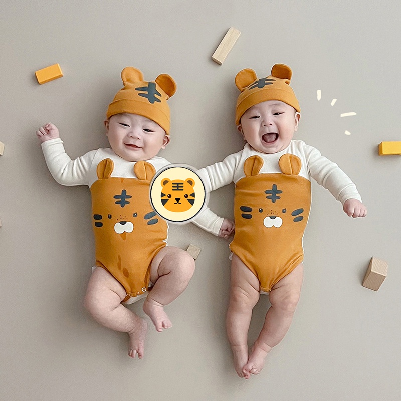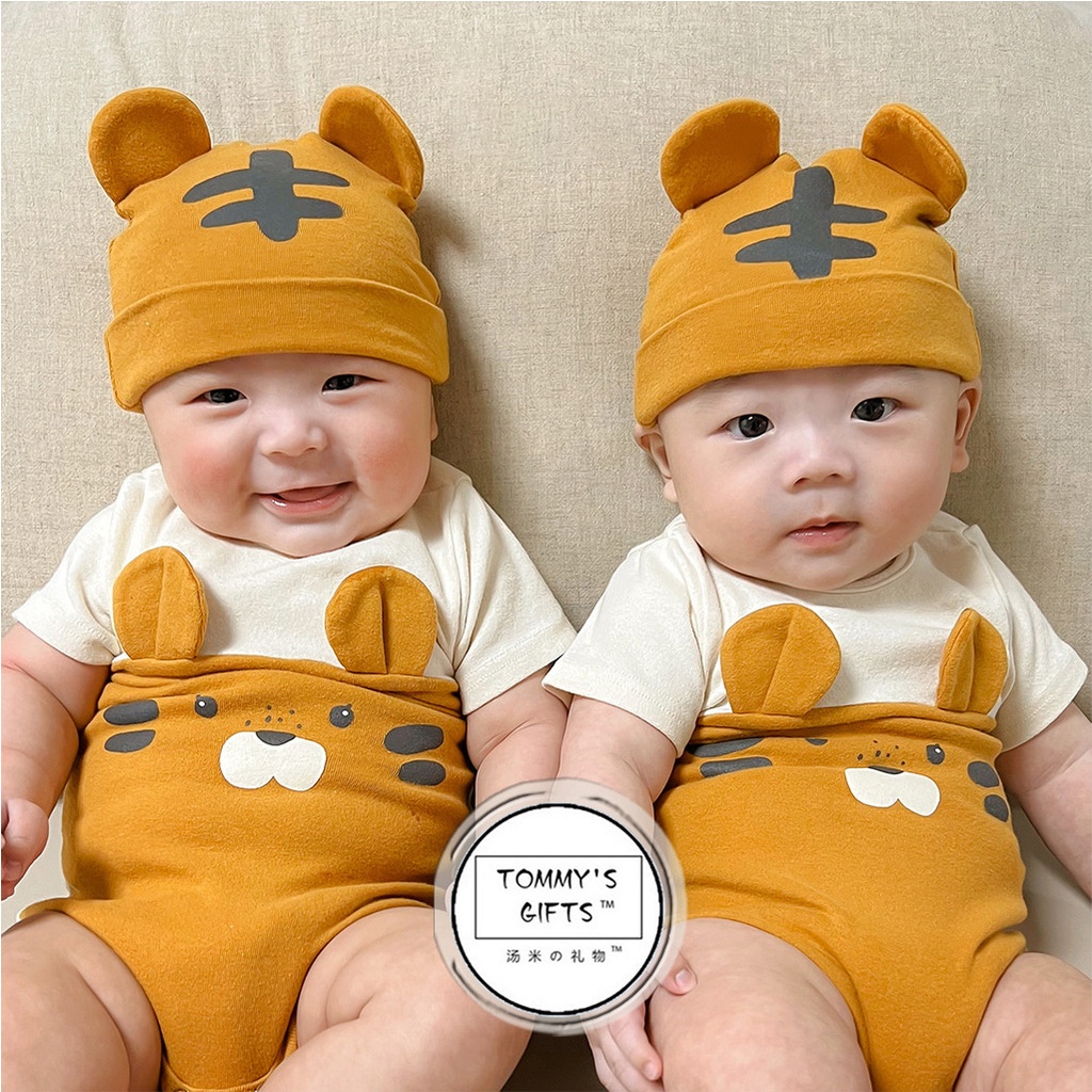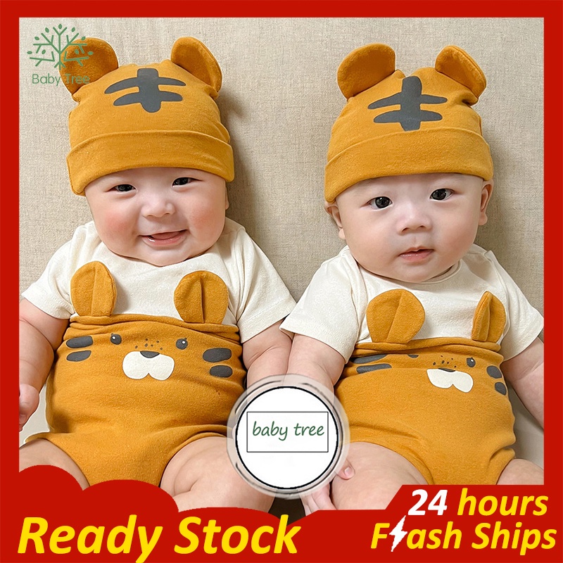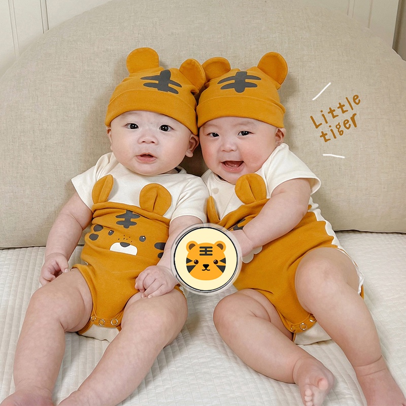 ชุดเสือเด็กแรกเกิด ชุดรอมเปอร์ แขนสั้น ลายเสือ พร้อมหมวก สําหรับเด็กผู้ชาย และเด็กผู้หญิง อายุ 1 ปี