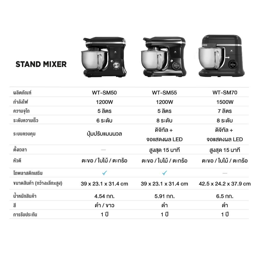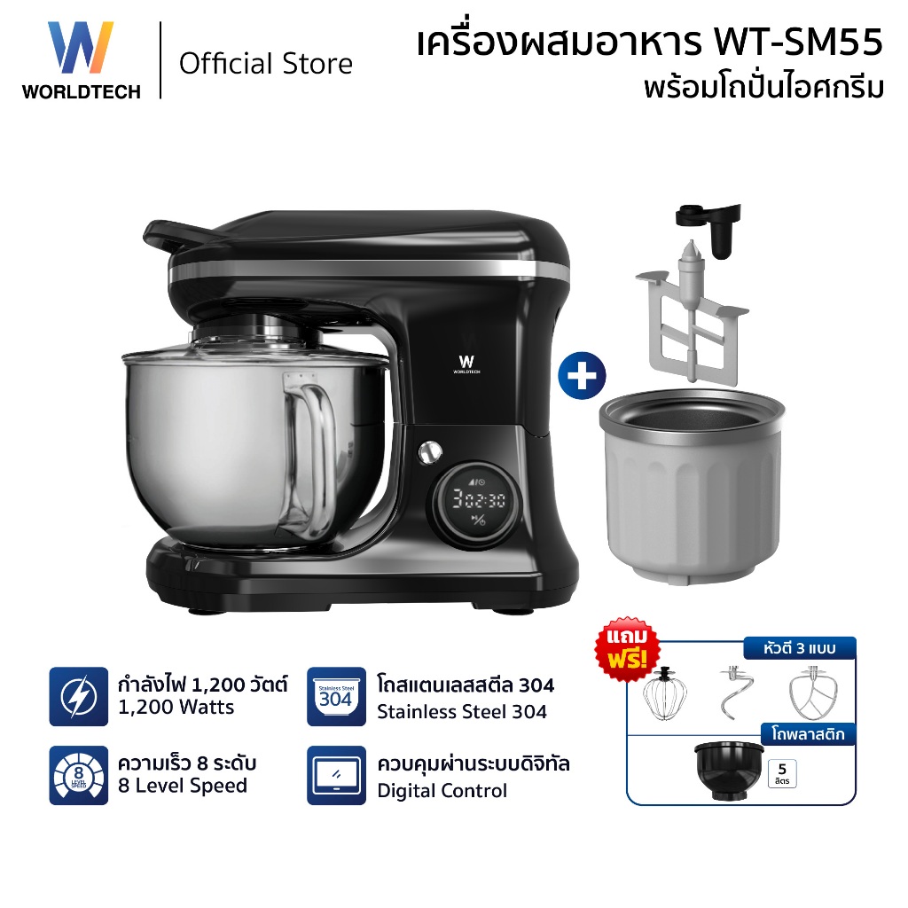 Worldtech เครื่องผสมอาหาร 5-7 ลิตร ผสมแป้ง ตีแป้ง Stand Mixer 1200-1500W รับประกัน 1 ปี