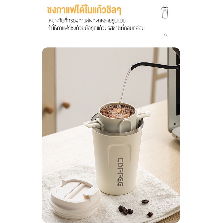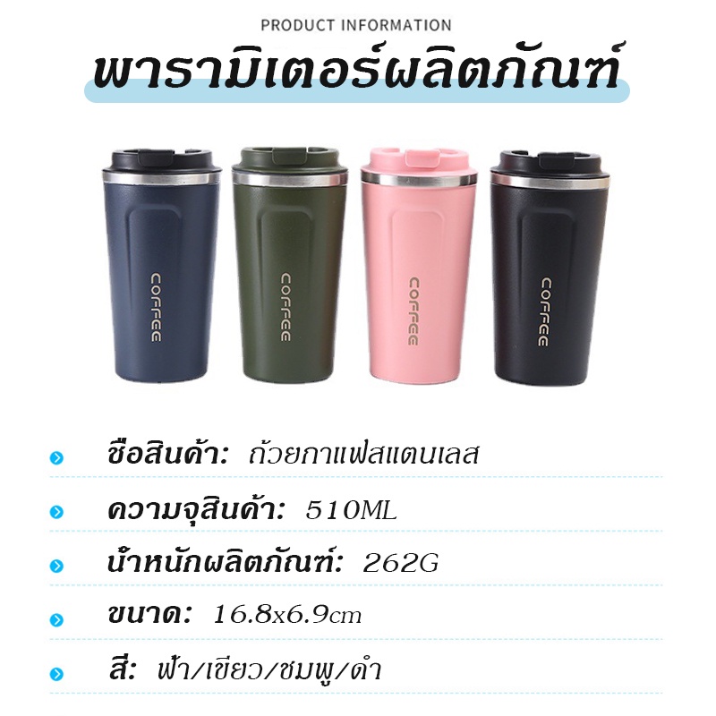 เตรียมจัดส่ง แก้วกาแฟ สแตนเลส 510ml เก็บได้ร้อน/เย็น สแตนเลส304เหมาะเป็นของขวัญ