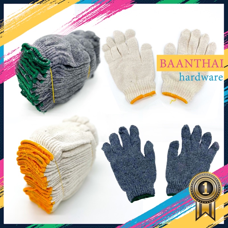 ถุงมือผ้า ถุงมือทอผ้าฝ้าย 4,5,6,7ขีด 12คู่ อย่างหนา (สีขาว/สีเทา) ราคาถูก