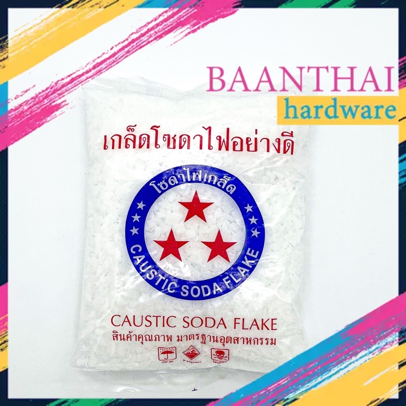 โซดาไฟเกล็ด ล้างท่อตัน ตราดาว 8ขีด. แก้ส้วมตัน ท่อน้ำตัน เเละใช้ในอุตสาหกรรมได้