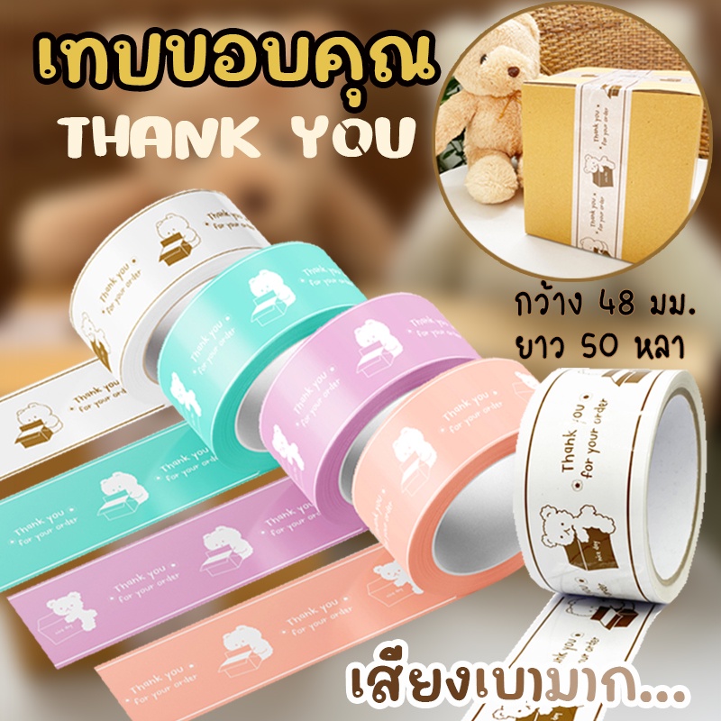 เทปThank you เทปขอบคุณลูกค้า เทปเสียงเบา ปิดกล่องพัสดุ เสียงเงียบ สีพาสเทล เทปน่ารัก จีบลูกค้า แปะกล่องพัสดุ