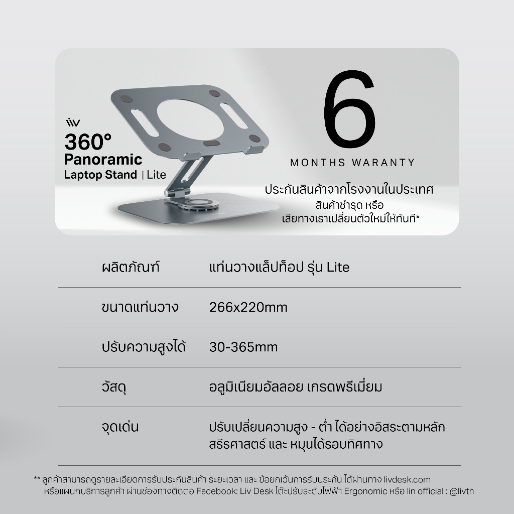 ประกัน 1 ปี LIV 360° Panoramic Laptop Stand Lite l แท่นวางแล็ป ท็อป วางโน๊ตบุ๊ค ที่วางไอแพด รองรับแล็ปท็อปขนาด 7-13 นิ้ว