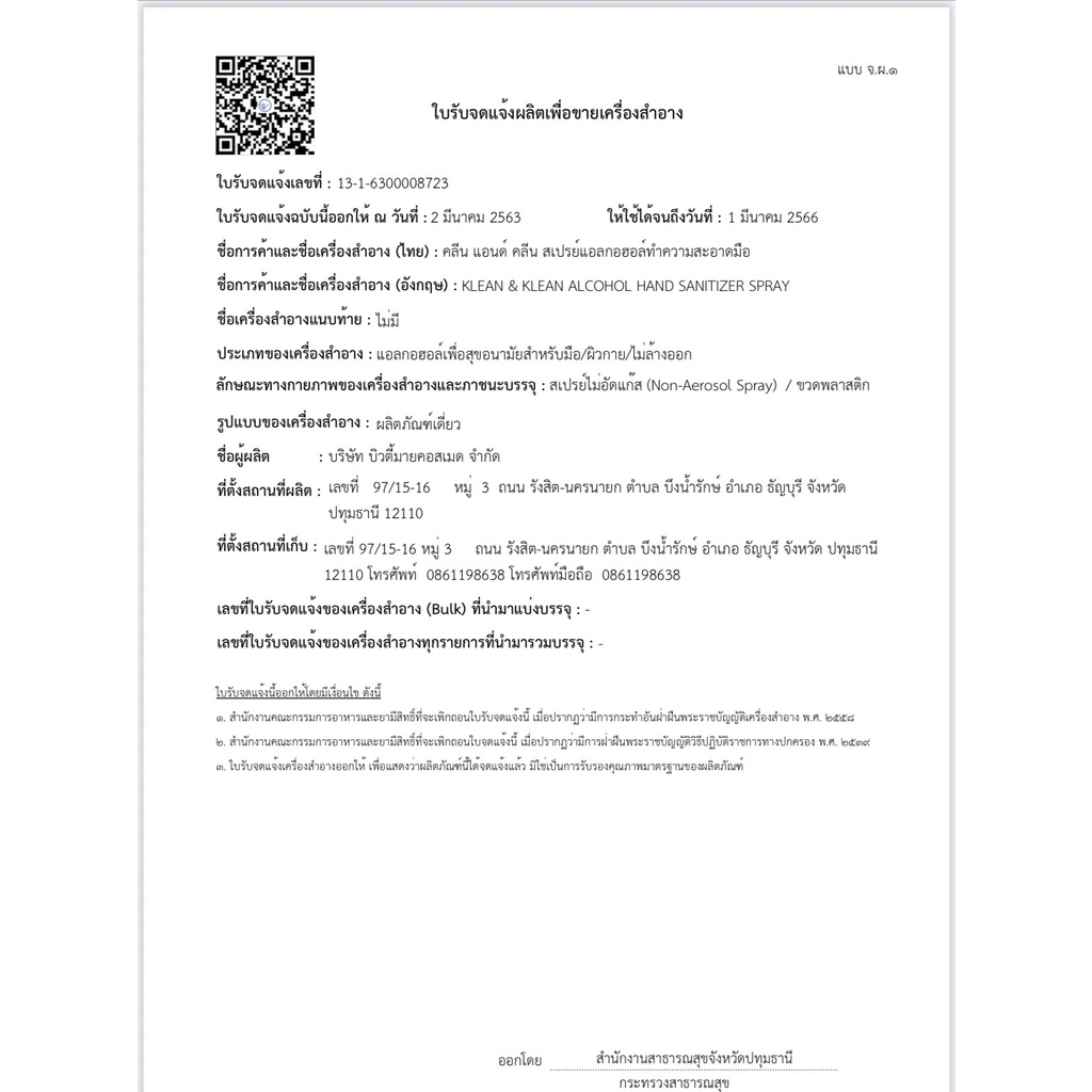 สเปรย์แอลกอฮอล์ food grade ไม่ขมติดมือ 75%ขนาดพกพา/20 ml กลิ่นfresh aqua