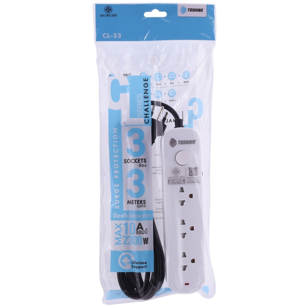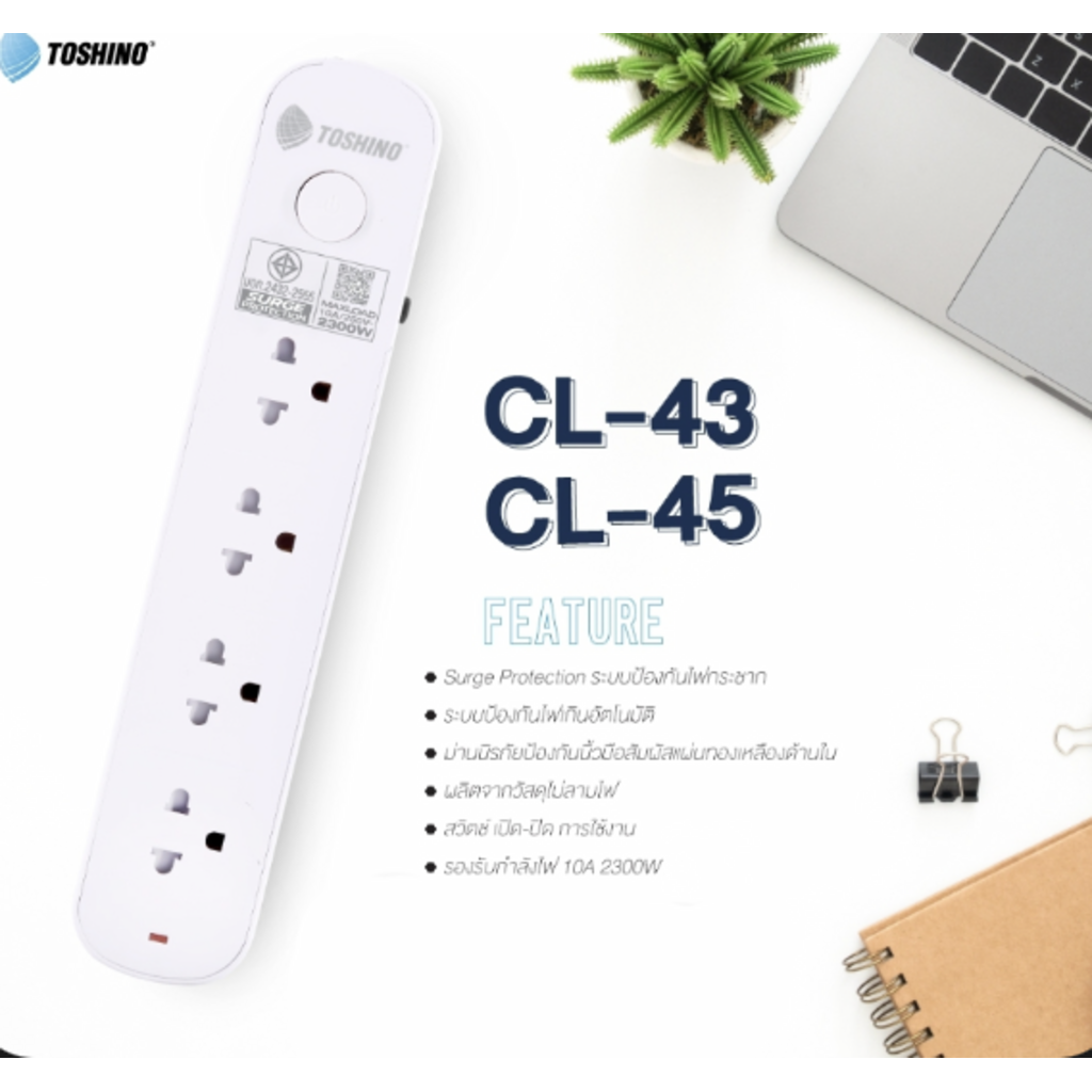 ‼️ ถูกที่สุด ส่งทุกวัน ปลั๊กไฟ รางปลั๊ก ปลั๊กพ่วง Toshino รุ่น CL 3/4/5/6 ช่อง1สวิตซ์ ฟรี! ปลั๊กแปลง รองรับไฟ 2300 วัตต์