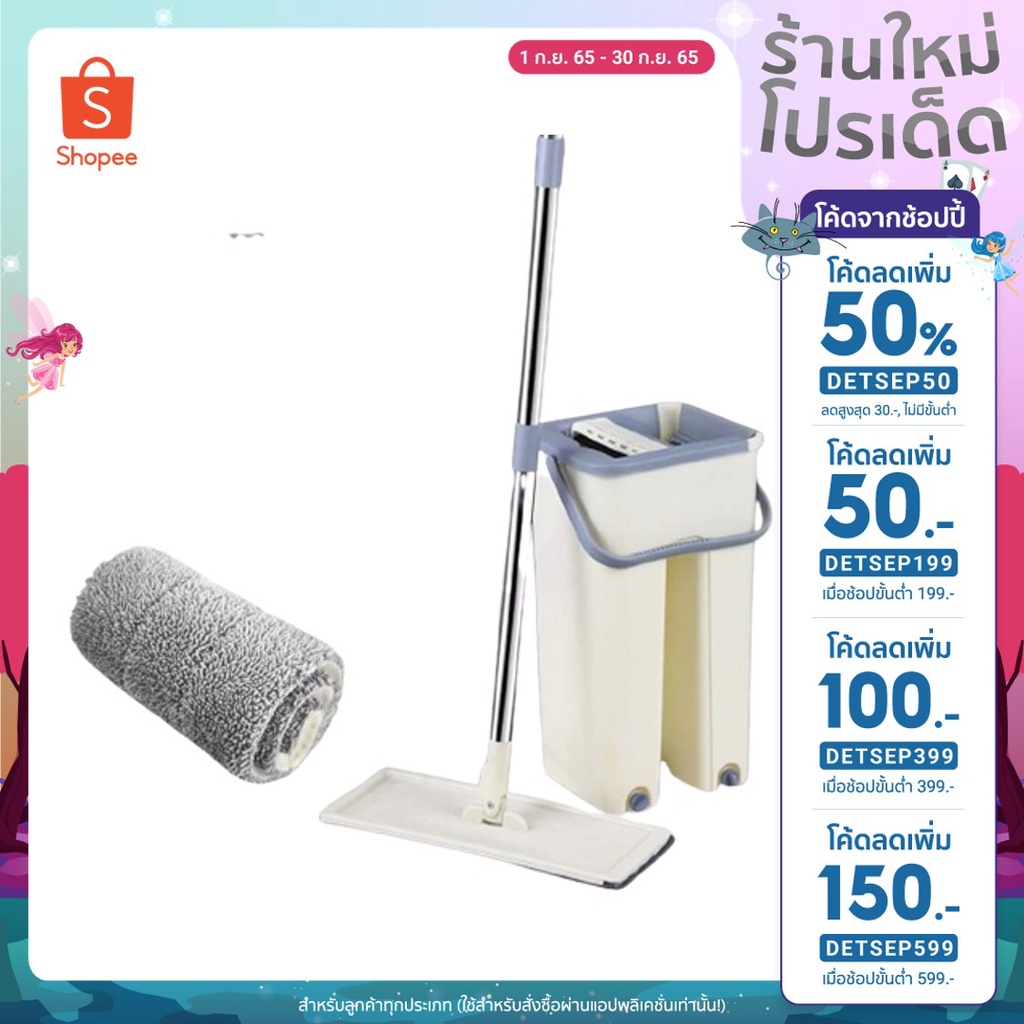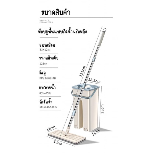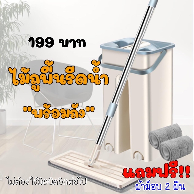 💥[เหลือ79.-กดเก็บโค้ดหน้าร้าน+ใส่โค้ดINCSL99] แถมฟรี! ผ้าม็อบ2ผืน ไม้ถูพื้น ไม้ม๊อบพร้อมถังรีดน้ำ ซักน้ำและรีดน้ำได้