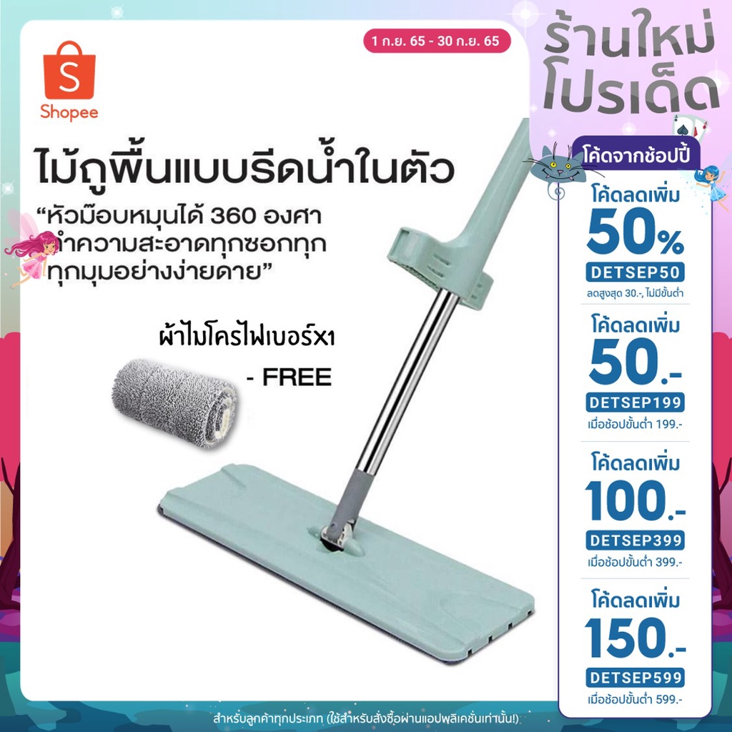[🔥เหลือ64.-🔥 เก็บโค้ดหน้าร้าน+ใส่โค้ด DETSEP50 ] ไม้ถูพื้น ไม้ถูพื้นแบบแบนรีดน้ำ ไม่ซักมือ ไม้ถูพื้น หมุนได้ 360 องศา