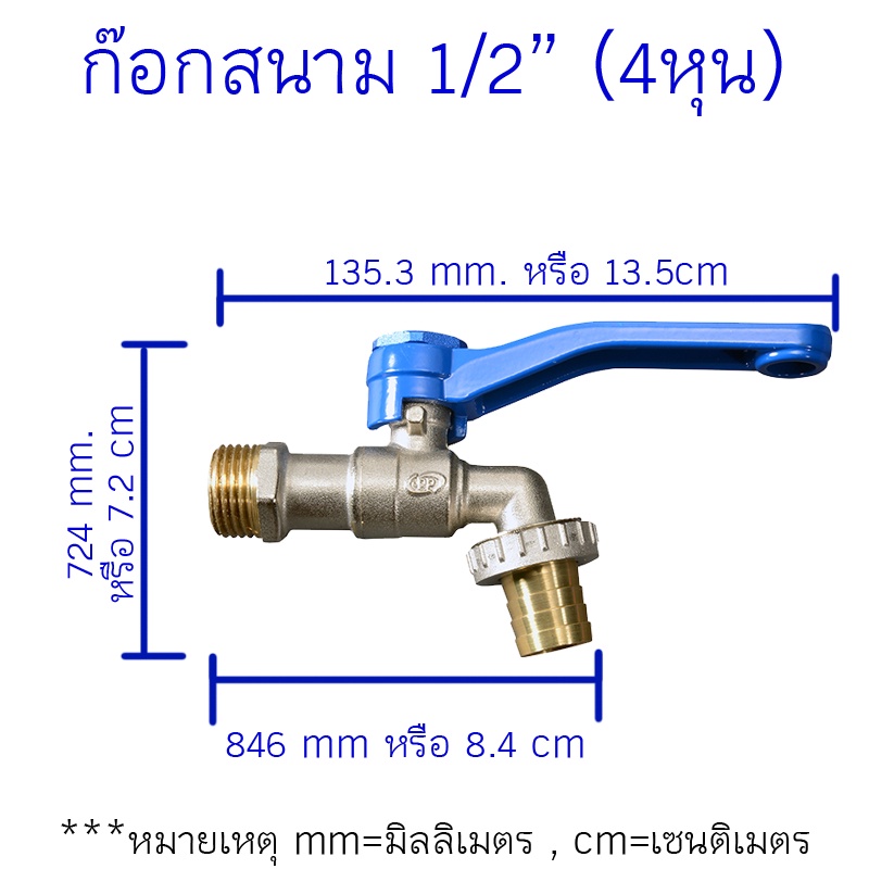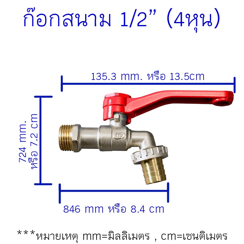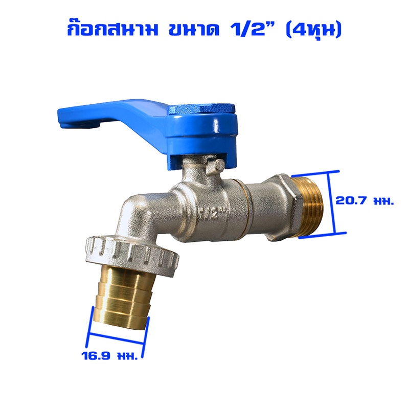 ก๊อกสนามทองเหลือง ขนาด 1/2" (4 หุน) ทองเหลืองแท้ ปลอดสนิม ไม่รั่วซึม