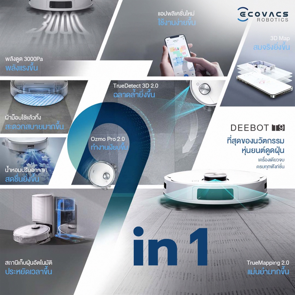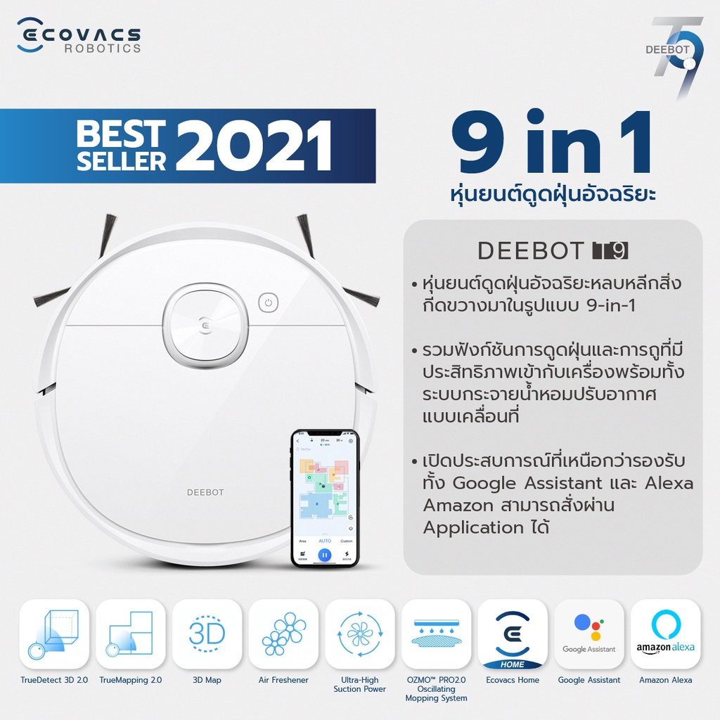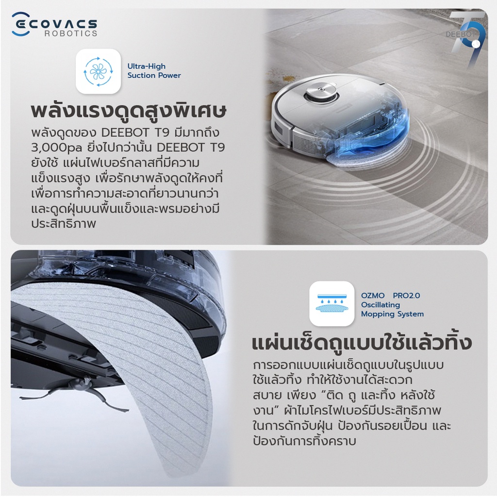 [ส่งฟรี+ประกัน 2ปี] หุ่นยนต์ดูดฝุ่นถูพื้น ECOVACS DEEBOT T9 + Auto Empty Station มาพร้อมสถานีเก็บฝุ่นอัตโนมัติ