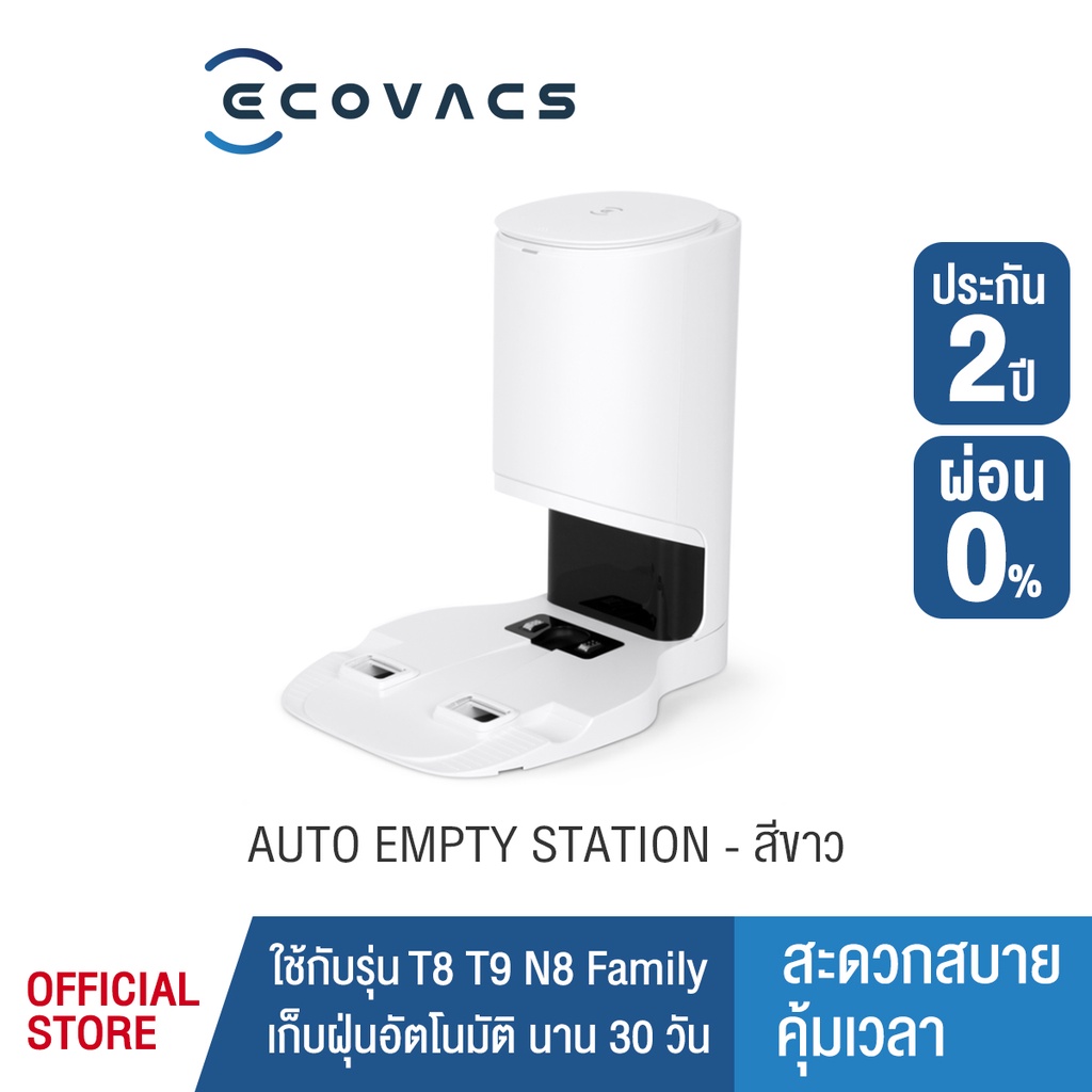 หุ่นยนต์ดูดฝุ่นถูพื้น ECOVACS สถานีย้ายฝุ่นอัตโนมัติ Auto-Empty Station เก็บฝุ่นนาน 30 วัน